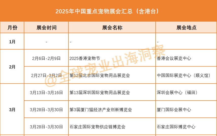 2025年中国宠物展会目前已官宣举办的中国宠物展会(含港台),包括但不限于(如下表):