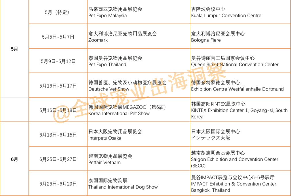 如有举办时间发生延期或其他变更,以展会举办官方最新变动信息为准;如有遗漏或最新宠物展会排期,欢迎大家留言补充~