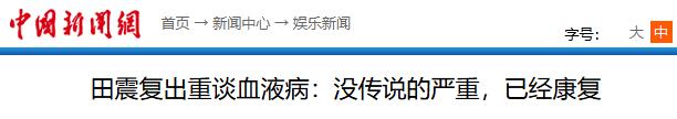 中国新闻网:田震复出重谈血液病:没传说的严重,已经康复