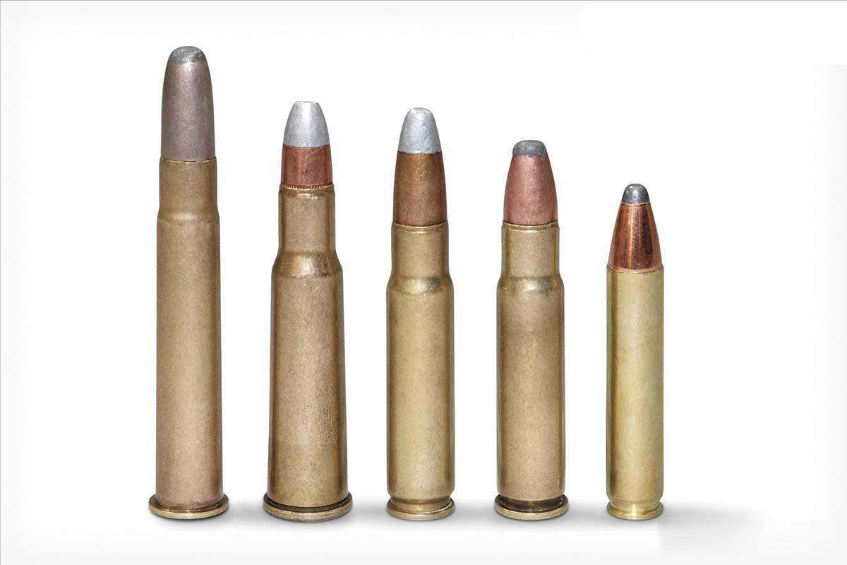 (从左到右):.30-30温彻斯特、.350 传奇、.35 雷明顿。.350 传奇与这两款经典猎鹿弹药不相上下