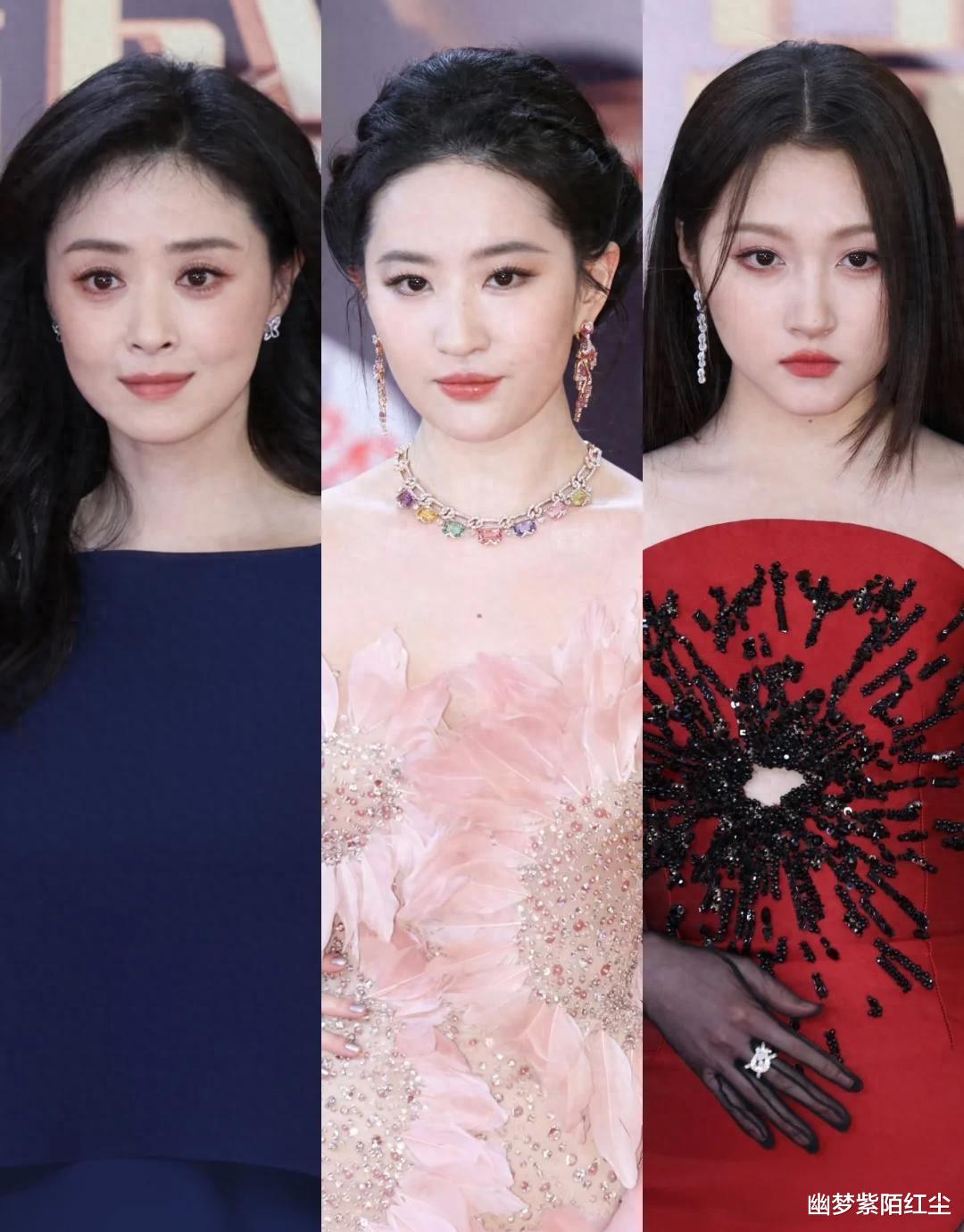 其他的女星,也是各有各的精彩,各有各的不足。张萌依旧是贵气妩媚,孟子义清纯可人,《九重紫》剧组整体表现还算不错。章若楠甜美可爱,就是总捂着肚子有点奇怪;马伊琍的造型看着干练,但搭配略显累赘;李沁的水墨画风格比较保守;佟丽娅黑白金的搭配性感又活泼;刘亦菲的造型虽然略显丰腴,但气场依旧强大;童瑶的黑金搭配,因为金色配饰过多,反而显得俗气。