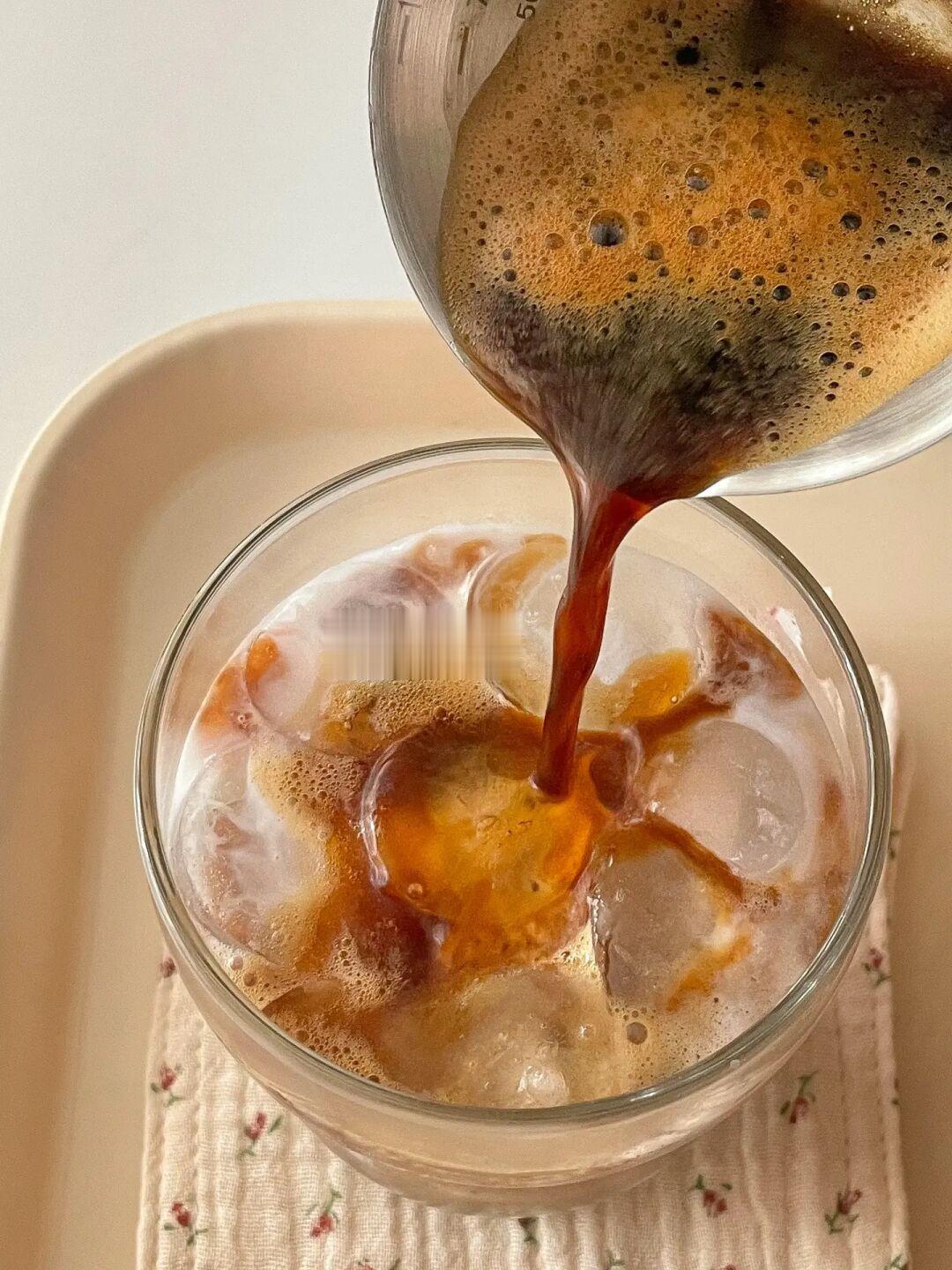 步骤:咖啡液提取萃取好,杯子里抹上栗子酱,放入冰块,倒入牛奶和咖啡液