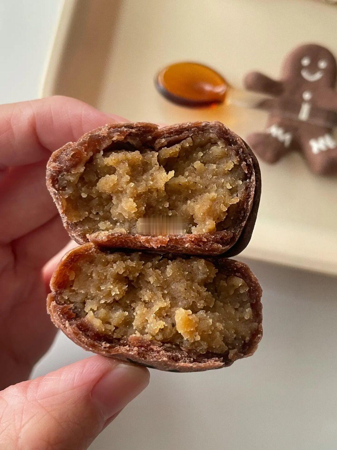 3️⃣浅色面团均分成10份,栗子泥分成20g/个