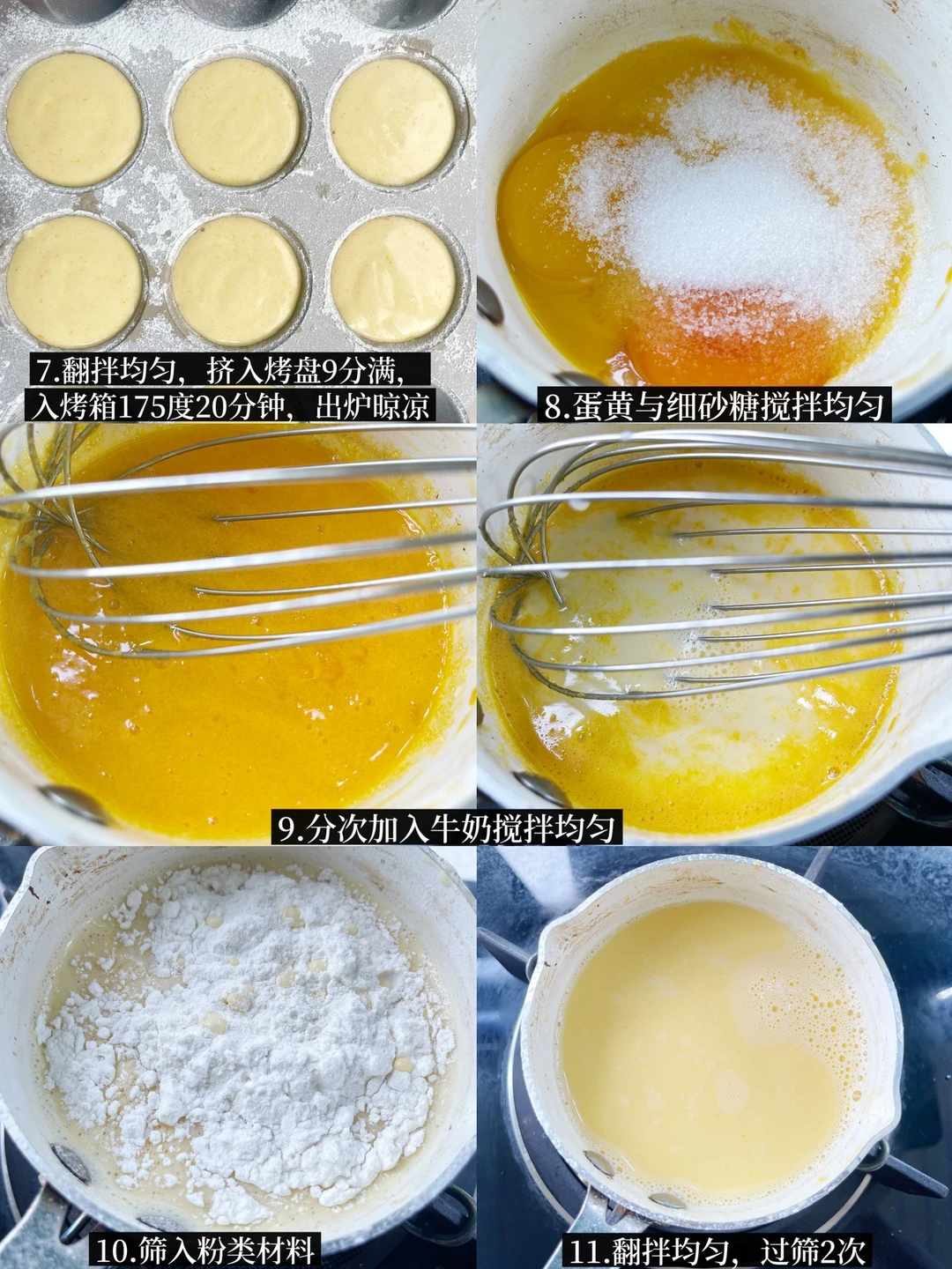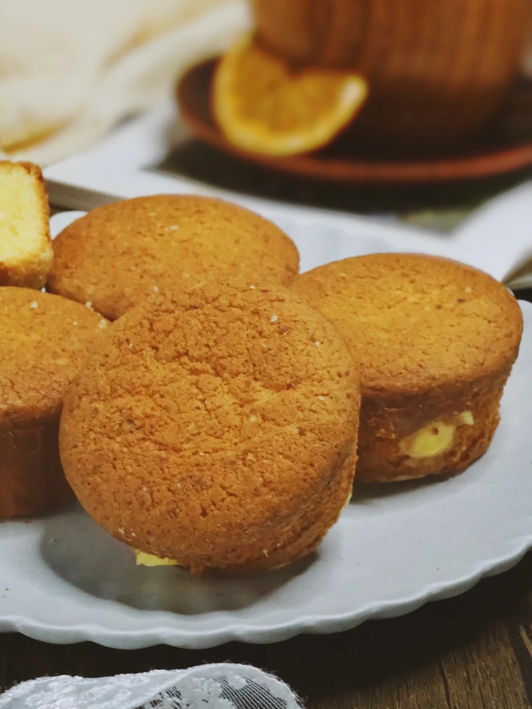 刚烤好的蛋糕表面是酥脆的口感,隔夜之后就会慢慢变软~趁热吃还会爆浆❗️