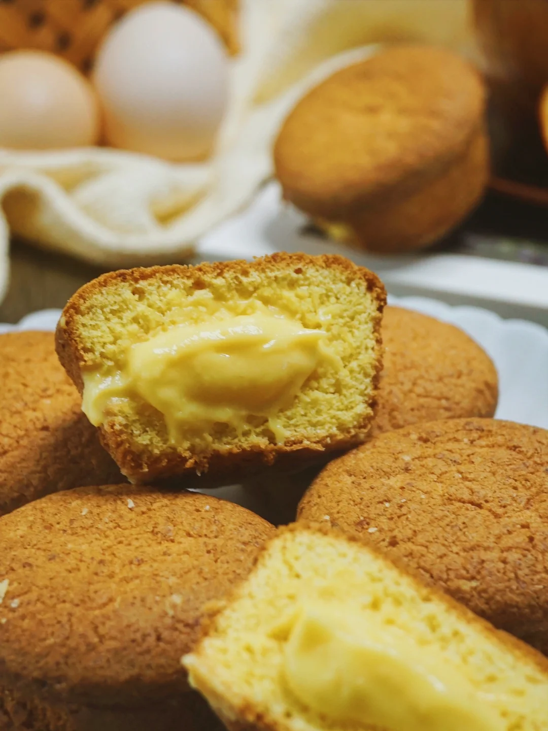 松软的海绵蛋糕,挤满香甜细腻的卡仕达酱。