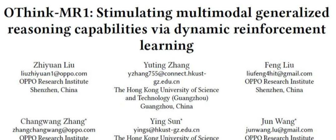 用上动态强化学习,多模态大模型也能实现泛化推理了?!来自OPPO研究院和港科广的科研人员提出了一项新技术——OThink-MR1,将强化学习扩展到多模态语言模型,帮助其更好地应对各种复杂任务和新场景。研究人员表示,这一技术使业界突破多模态泛化推理能力。