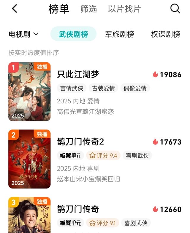 仅播出6集,它便跻身鹅厂武侠剧热度榜的第一名。