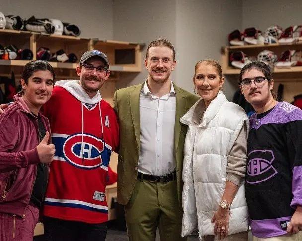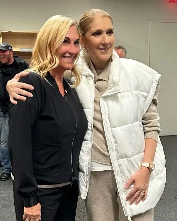 55岁的加拿大天后席琳·迪翁 Celine Dion 在去年2022年12月宣布,她患有罕见的神经系统疾病“僵人综合症”,解释了她过去长期出现健康问题的原因。 而 周一(10月30日)Celine Dion 首次亮相拉斯维加斯,去体育场看了一场冰球比赛,支持家乡球队蒙特利尔加拿大人队 Montreal Canadiens 在拉斯维加斯与维加斯金骑士队 Vegas Golden Knights 决战。 Celine Dion 与她 22 岁的儿子 René-Charles 以及 13 岁的双胞胎 Nelson 和 Eddy 一起出席。赛后,她前往更衣室与加拿大队见面,与他们握手、拥抱。 总结:很健康。