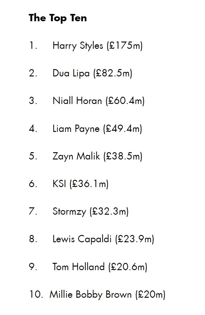 英国杂志《HEAT》发布了30岁以下最富裕名人排行榜!国际第一名为 Kylie Jenner。英国第一名为 Harry Styles。 Harry Styles 连续第二年荣登《Heat》杂志富豪榜,成为30岁以下最富有的英国名人。2023 年,Harry Styles 凭借 Love On Tour 在全球巡演两年,获得 1.75 亿英镑的收入,首次突破 1.5 亿英镑大关,该路演总票房达到惊人的 5.08 亿英镑。他还与漫威签订的五部电影合约,其中饰演的星狐 Eros Starfox 一角,还因成为古驰 GUCCI 的“缪斯”而获得 800 万英镑的丰厚代言费用。此外他还有 Pleasing 指甲油系列。 好像没有小杨哥有钱!