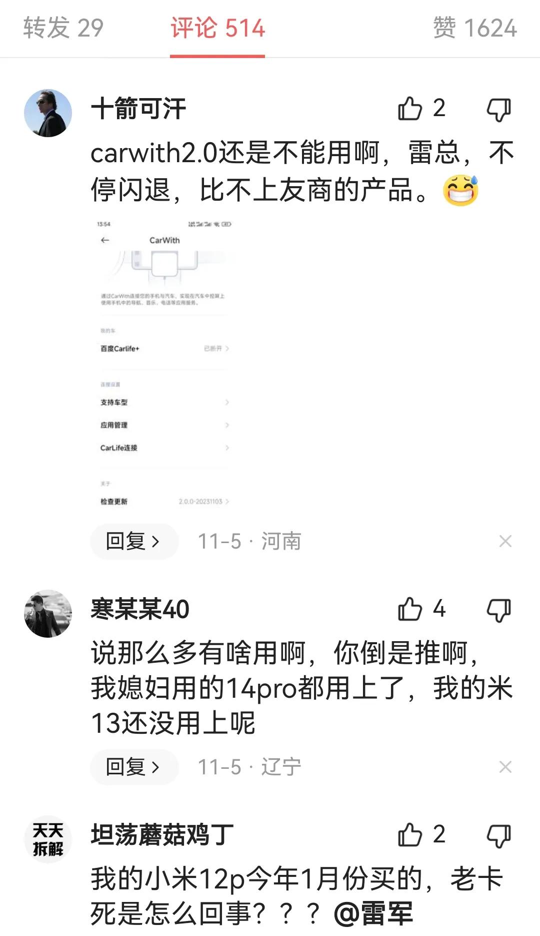雷总发文告知小米操作系统的研发之路,因为过去讲的少,很多人不了解,然后这评论区,应该大部分是米粉吧,既然适配计划时间有点长,为啥要这个时候发布呢?适配机型多点,晚点不好吗?或者早点发布,关于小米的舆论,澎湃的口碑会不会比现在更好。好像澎湃OS是第一个没有内测,没有公测,直接应用的操作系统,难道小米实验室比广大消费者体验更全面?