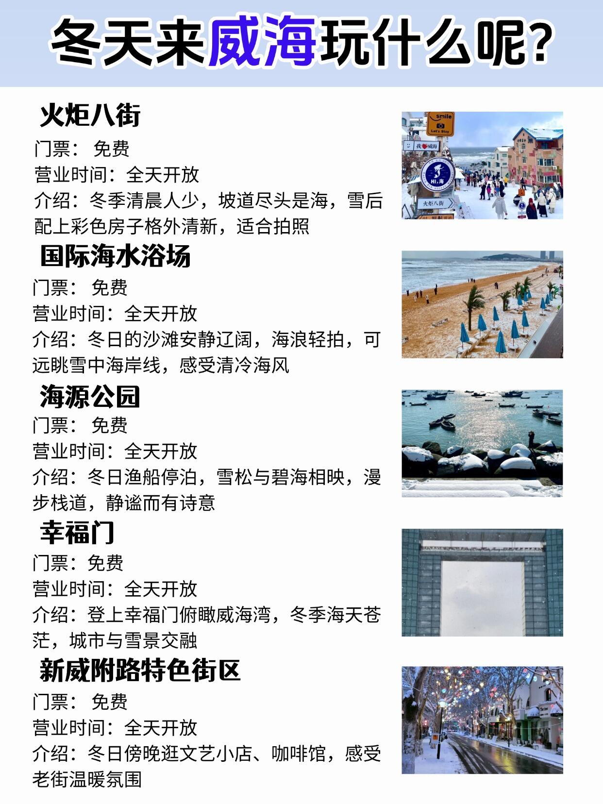 📕总结:早上去火炬八街,冬天人少,国际海水浴场沙滩空荡荡,海源公园绝了!随手拍都像文艺片,幸福门纯粹打卡,新威附路冬天冷清