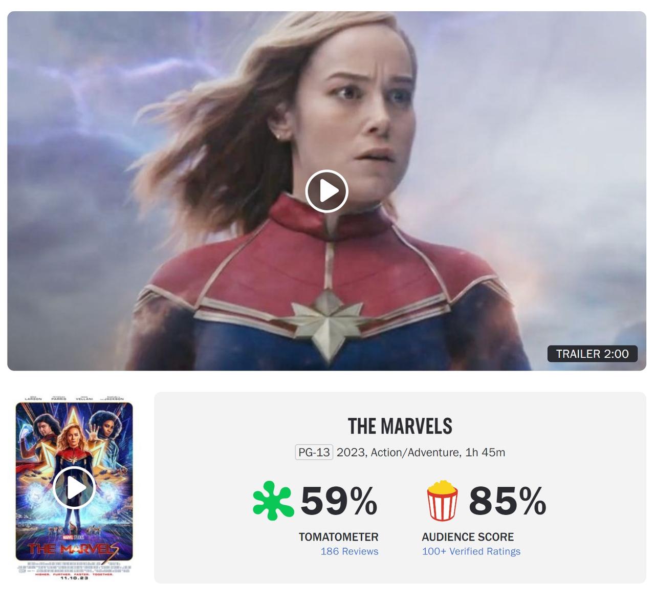 漫威全新超级英雄电影《惊奇队长2》昨天全球上映。 据了解,该电影口碑不好,烂番茄新鲜度不及格。 除了口碑不佳之外,票房也不太成功,除了在中国和韩国夺冠,在大部分的国家都销售惨淡,票房低迷。 在中国大陆地区,《惊奇队长2》内地首日最终票房在3000万。 而2019年3月8号上映的前作《惊奇队长》内地首日票房破2亿,相差数倍。而以《惊奇队长2》的口碑,电影最终票房能否破2亿都是问题。 近日分析员预计《惊奇队长2》开画票房约为6000万至6500万美元,远不及前作,在漫威电影里也比较失败。