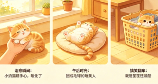 你一定刷到过这些治愈画面,刚满月的奶猫歪着脑袋蹭你的手心,呼噜呼噜的振动顺着指尖传到心里,暖得人整个都软下来。午后阳光落在窗台,猫咪把自己团成一个小毛球,缩在垫子上睡得四脚朝天,连尾巴都晃得懒洋洋的。还有不少搞笑的瞬间,猫咪跳桌子没站稳,一头栽进了装衣服的筐子里,露出半个脑袋一脸懵,明明翻车了还硬撑着若无其事走掉,能把人笑得所有烦恼都忘了。