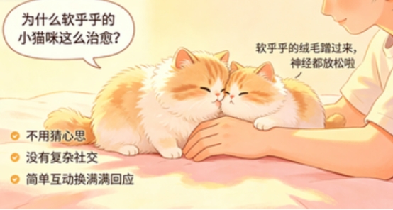 为什么软乎乎的小猫咪这么治愈,其实原因很简单。它们不用你猜心思,也没有复杂的社交,一个简单的互动就能换来满满的回应,软乎乎的绒毛蹭过来,所有紧绷的神经都能放松下来。