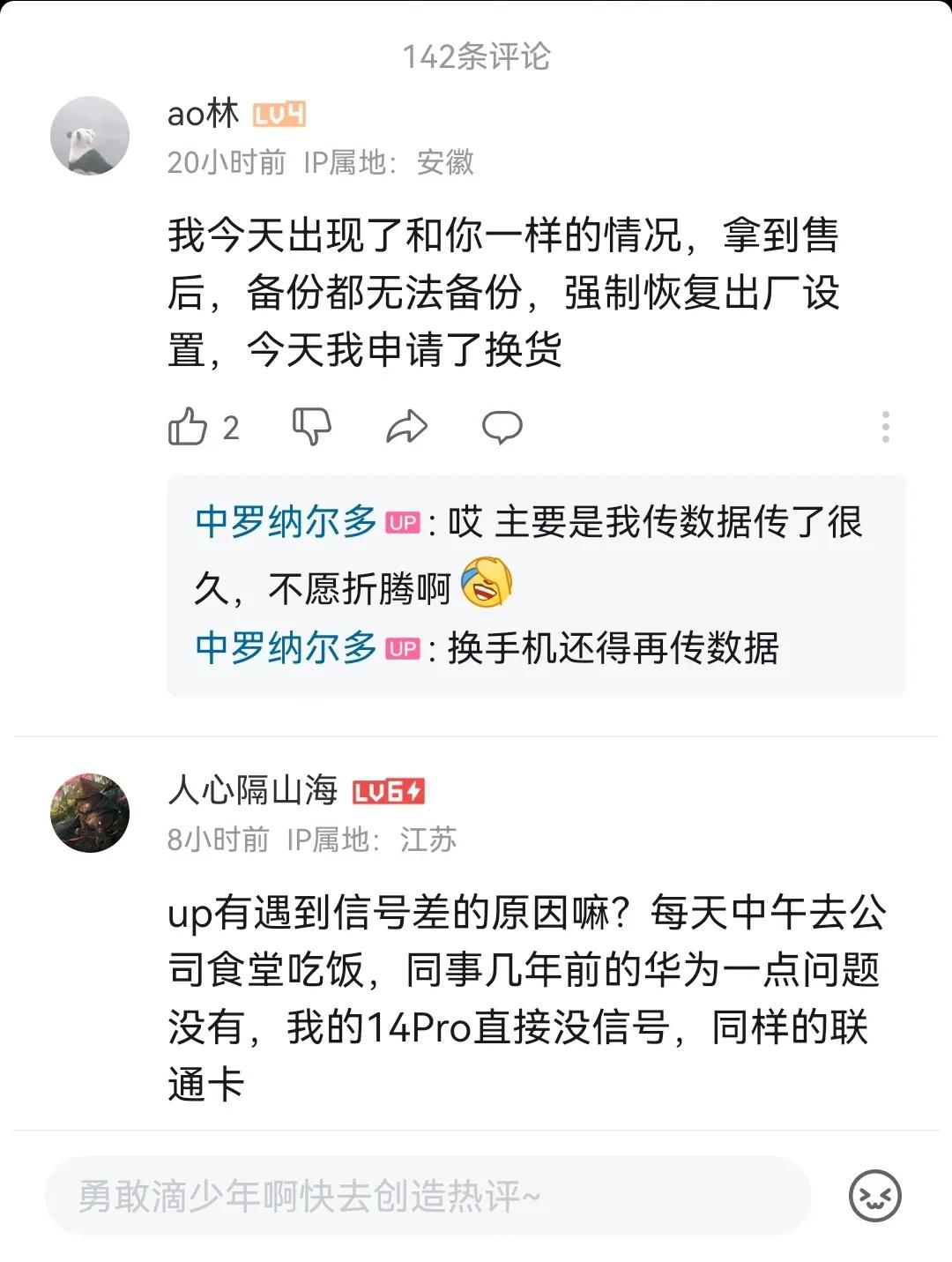 用户10xxx77 3 2023-11-18 20:58 这些人真难伺候,又不是什么大问题,重启一下会死人吗?又不是不能用,毕竟价格摆在那,作为真米粉,不能小题大做,忍忍就好。 大牛 回复 11-18 21:40 重启真不能用,只能刷机[哭着笑] 用户10xxx77 回复 大牛 11-18 22:08 刷机就刷机吧,雷总做手机都要不赚米粉的钱了,还想怎样?哪怕问题再多,也要忍忍,不要给雷总太多压力,要不然米粉以后都买不到便宜手机了,雷总是米粉的大救星