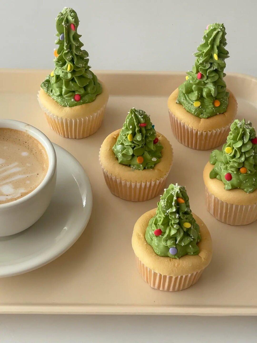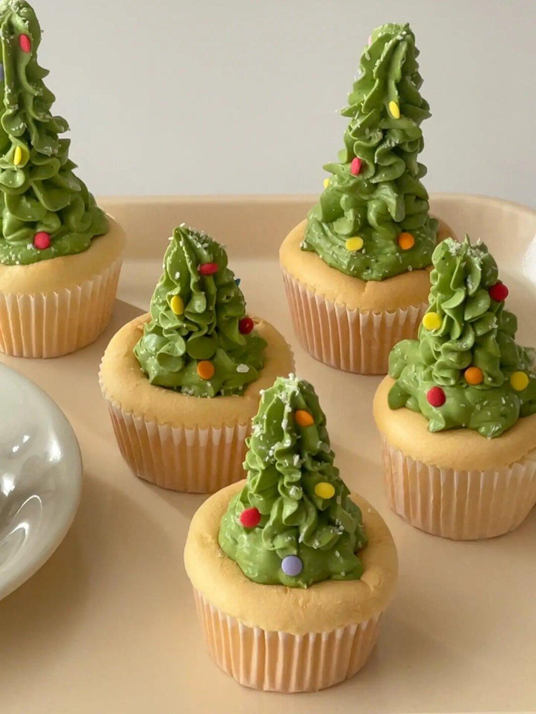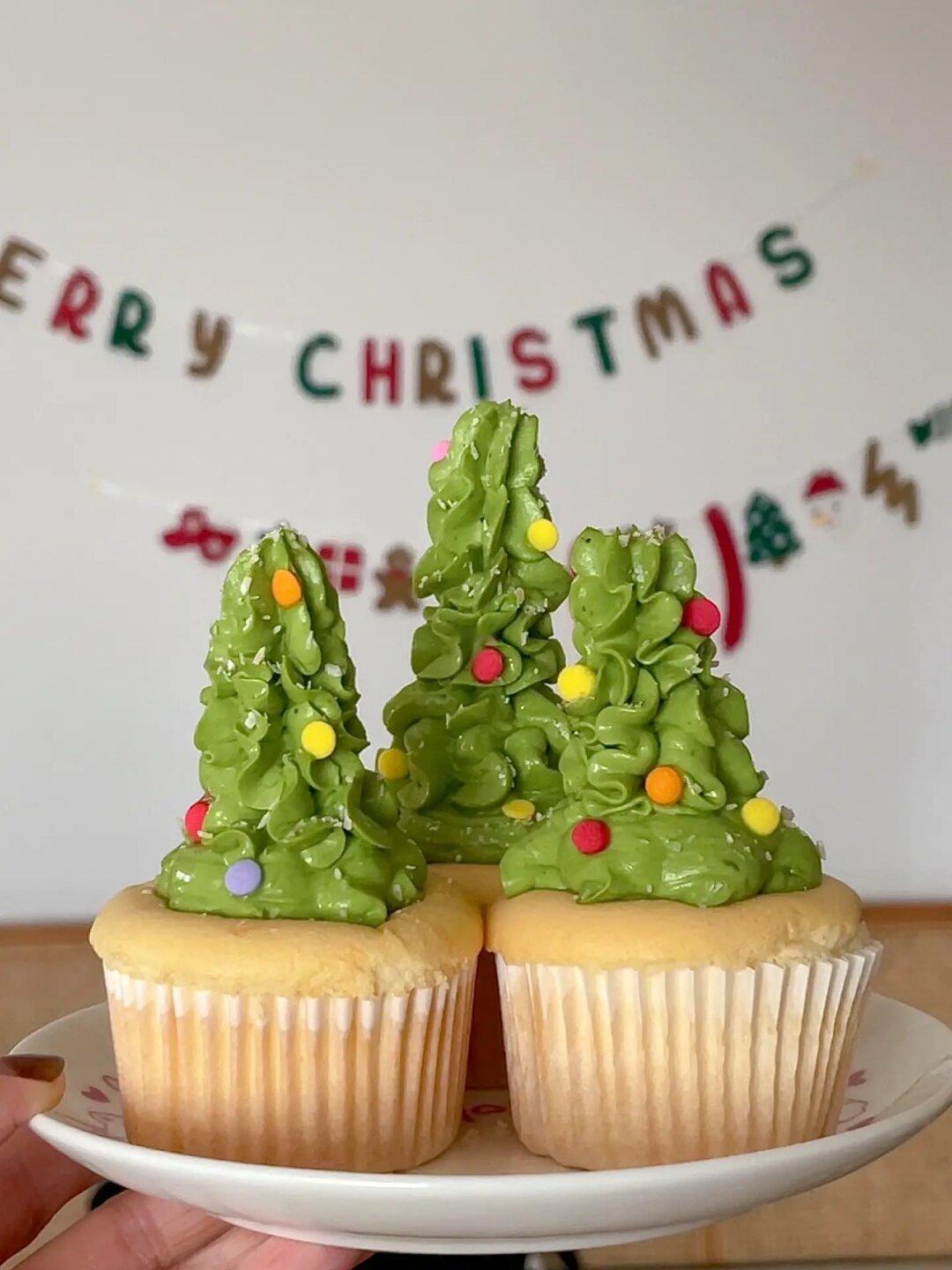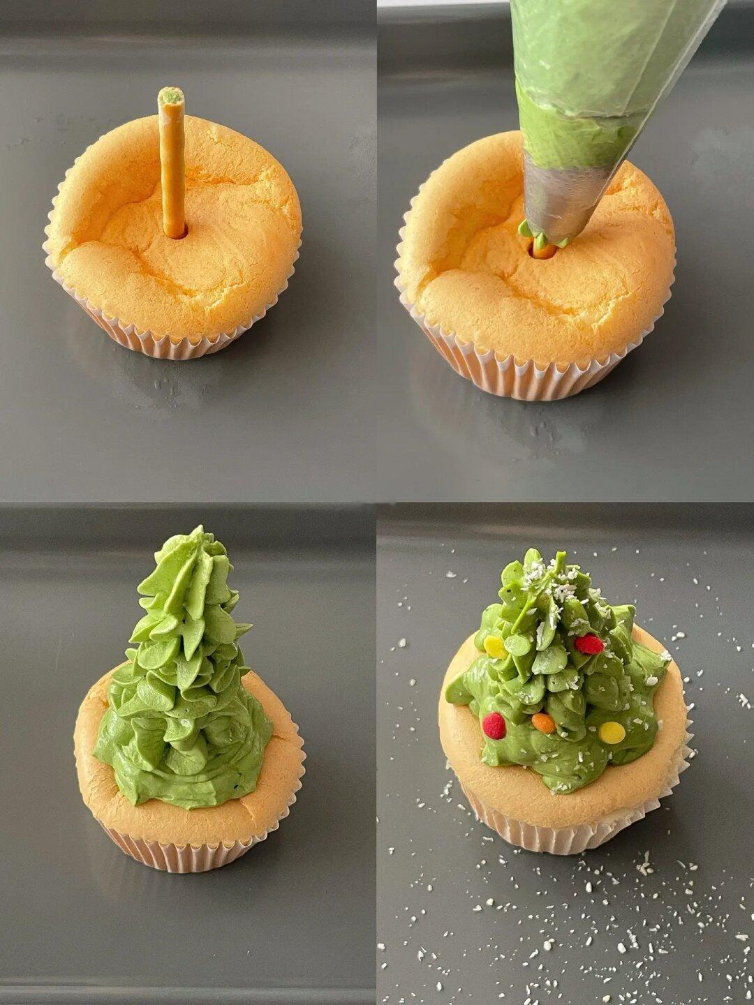 在外网刷到很可爱的圣诞树纸杯蛋糕
