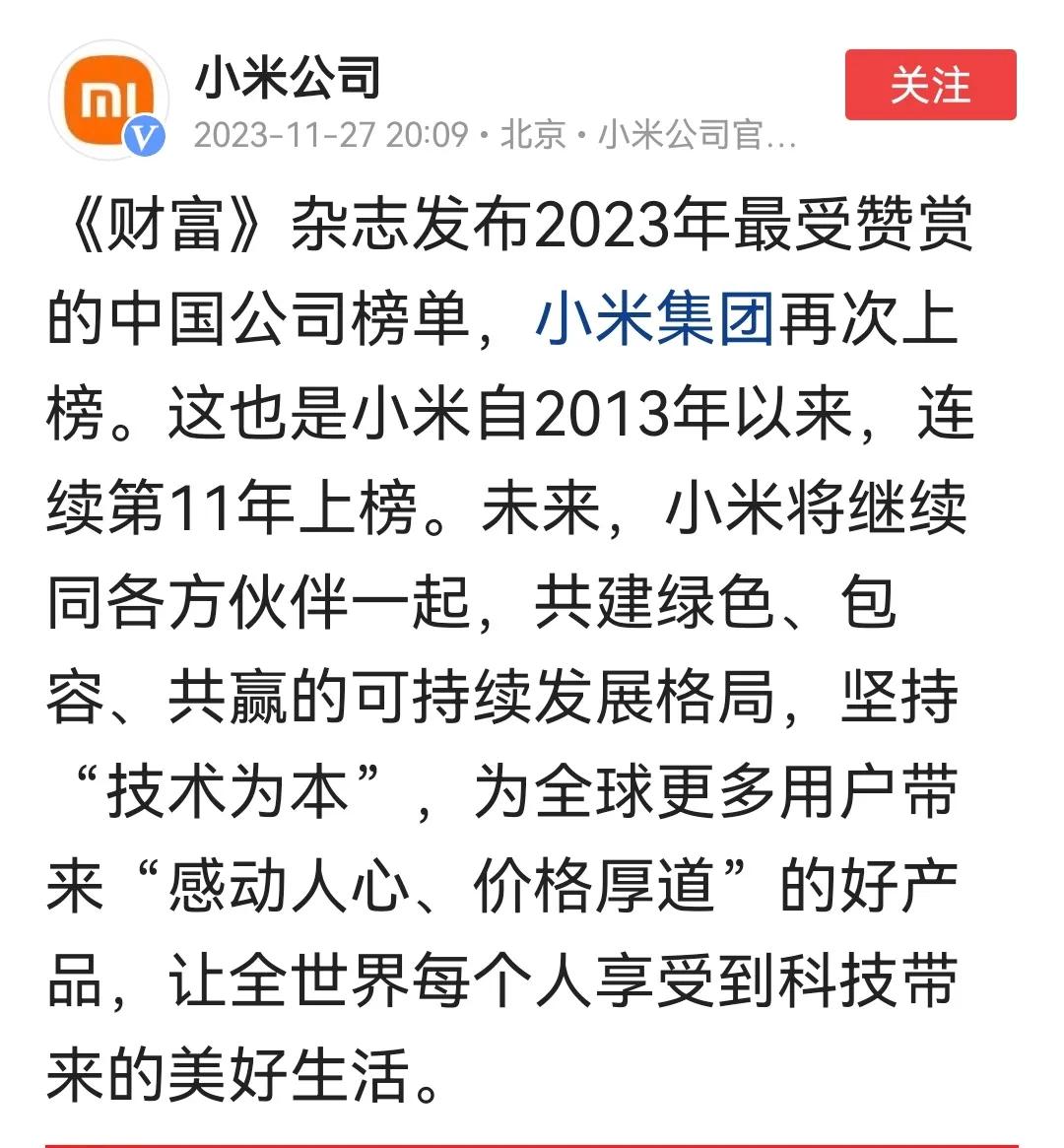 前有interbrand全球最佳品牌87名的小米,后有最受赞赏的中国公司,小米这是一点宣传的机会都不放过啊。前者就不说了,毕竟interbrand是啥好多人都不知道,但后者是中国品牌,那就有很多说道了,赞赏榜单没有字节跳动,难道用户都觉得不好?榜单竟然有美团,难道美团的口碑比字节跳动要好?这类榜单真就看看得了,让自媒体作者媒体人宣传就好,官方下场宣传,得到的效果是相反的。