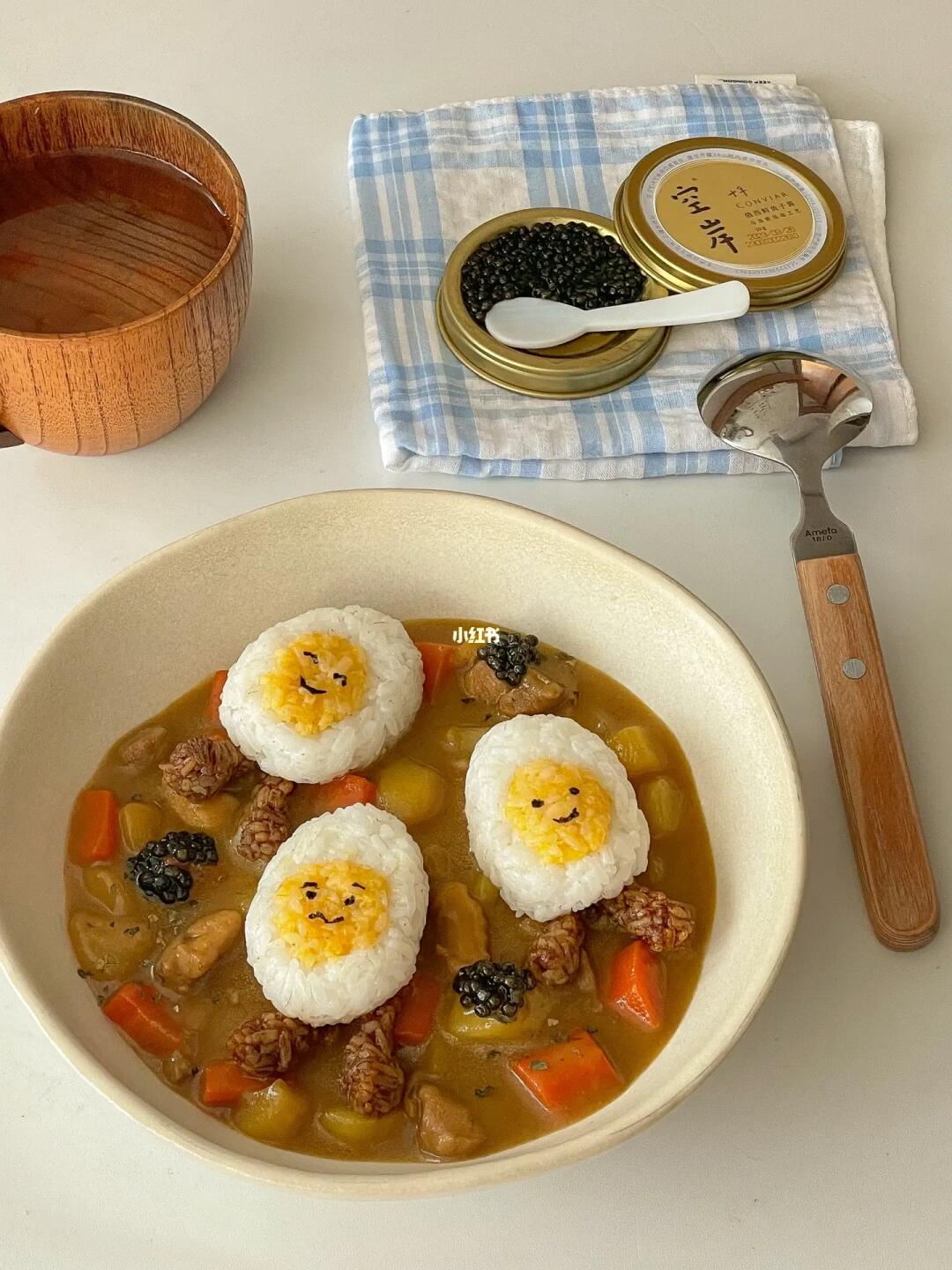 酱汁浓郁的咖喱搭配着粒粒分明、入口鲜美爆汁的鱼子酱这也有点太幸福了吧!在家就能吃出满满的仪式感✨营养价值也很高,偶尔吃一下补充补充蛋白质!