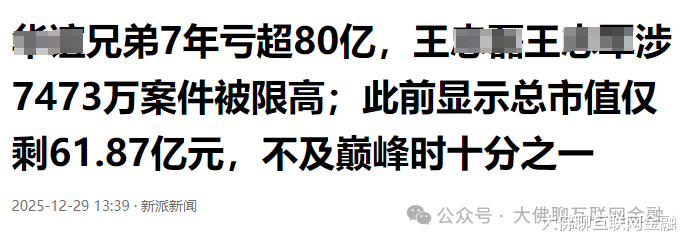 除了艺人外,现在影视制作企业的日子也不好过。前段时间影视龙头王氏两兄弟还被限高了,涉及了七千多万的执行案件,所持上市公司股权也被100%冻结,并且部分股权还被执行拍卖了。当年国内的影视娱乐第一股,市值也仅剩60多亿,还不够巅峰期的十分之一。