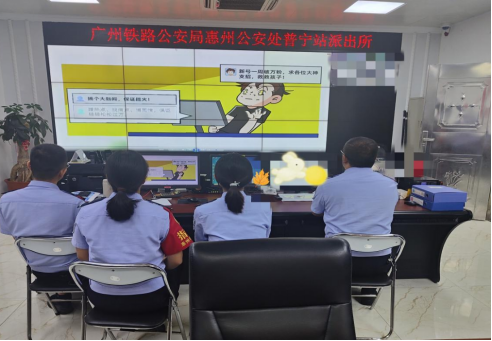三、网络安全宣传进站段。活动当中,普宁站派出所民警深入铁路内部单位,全覆盖开展网络安全宣传,通过LED大屏幕滚动播放公安机关精心设计的网络安全主题标语、讲解PPT等方式,内容涵盖网络安全的重要性、防范网络诈骗的技巧、保护个人信息的方法等,吸引自觉参与公安机关网络安全宣传活动,共同筑牢网络安全防线。