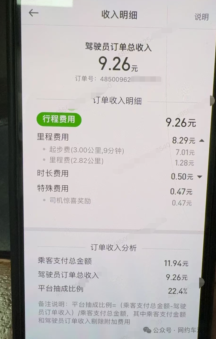 但是今天这篇内容想和大家聊一聊很少有司机关注的里程费问题。因为最近不少司机师傅发来截图显示,部分城市的里程费已经跌破5毛钱一公里了。