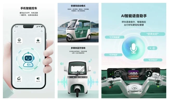 爱玛出行APP实现全方位车机互联,感应解锁告别忘带钥匙的尴尬;远程控车、鸣笛寻车功能,让偌大停车场找车也轻松。汽车级防水与智能防盗系统,全方位保障车辆安全,出门在外无后顾之忧。软硬双启动模式可按需选择,软启动起步柔和,适合带老人孩子;硬启动动力十足,适合独自追风。多媒体蓝牙音响带来3D环绕立体声音效,骑行时播放喜欢的音乐,让春日出行满是氛围感。