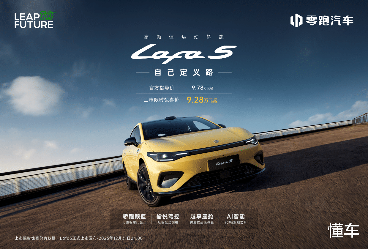 限时惊喜价9.28万起!零跑Lafa5正式上市 重塑10万级纯电轿跑价值标杆