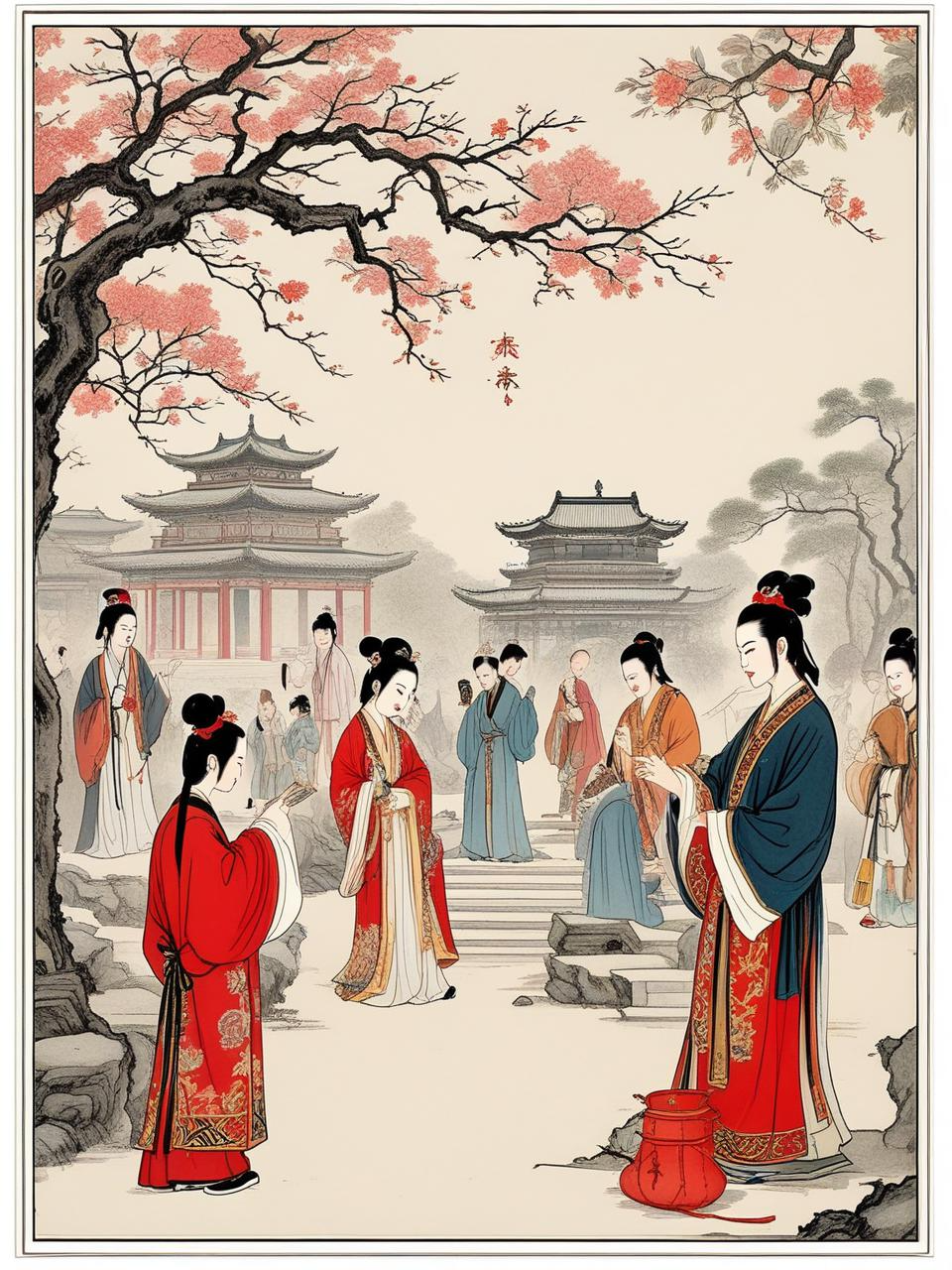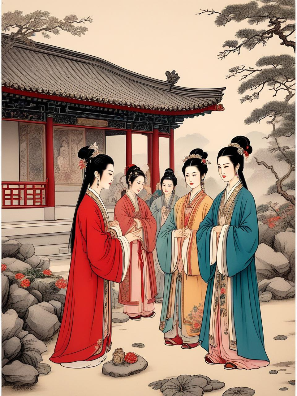 薛宝钗与林黛玉形成了鲜明的对比。她端庄稳重、博学多才,深谙封建礼教之道,是封建社会所推崇的“淑女”典范。她努力迎合家族和社会的期望,试图在封建秩序中找到自己的立足之地。她的房间布置得如雪洞一般,简洁朴素,体现了她对物质的淡泊与对封建礼教的严格遵守。在贾府中,她善于处理人际关系,对上恭敬有礼,对下宽厚待人,赢得了众人的赞誉。她的“冷香丸”暗示了她内心深处的冷漠与压抑,她对爱情的克制与理性,使她在追求幸福的过程中逐渐失去了自我。她深知宝玉对黛玉的感情,却依然为了家族利益和所谓的“金玉良缘”而努力争取宝玉。最终,她虽与贾宝玉成婚,却未能收获真正的爱情,只能在孤独中度过余生,成为封建礼教的牺牲品,其命运的悲剧性同样令人动容。