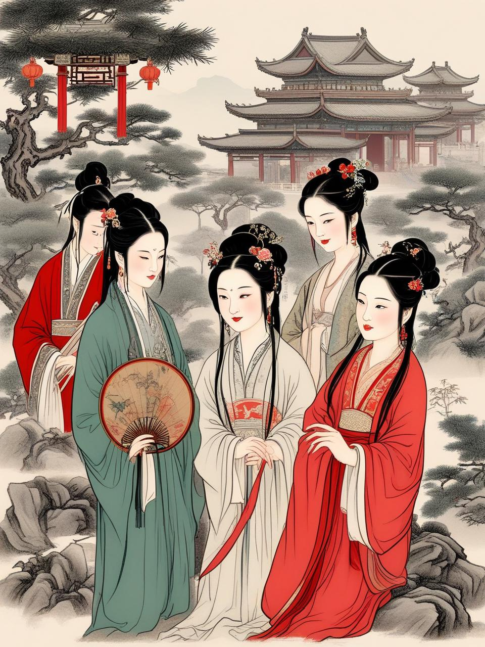林黛玉,这位敏感细腻、才情出众的女子,犹如一朵在风雨中飘摇的娇花。她自幼寄人篱下,虽身处繁华的贾府,却始终无法摆脱内心的孤独与凄凉。她的才情在诗社中展露无遗,“偷来梨蕊三分白,借得梅花一缕魂”的咏白海棠诗,尽显其清高脱俗的才情与孤傲的品格。她的敏感让她对周围的一切都充满戒备,常常因一花一叶的凋零而黯然神伤。她与贾宝玉之间纯真而又曲折的爱情,在封建礼教的重重压迫下,注定只能是一场悲剧。她多愁善感,对宝玉的言行举止过度解读,一次次的误会与争吵,既源于她对爱情的执着,也源于她内心深处的不安全感。其“葬花吟”中“花谢花飞花满天,红消香断有谁怜”的悲叹,是对自身命运的哀伤,对封建礼教下女性悲惨处境的无声控诉,她以泪洗面,最终在宝玉与宝钗成婚的打击下,香消玉殒,令人扼腕叹息。