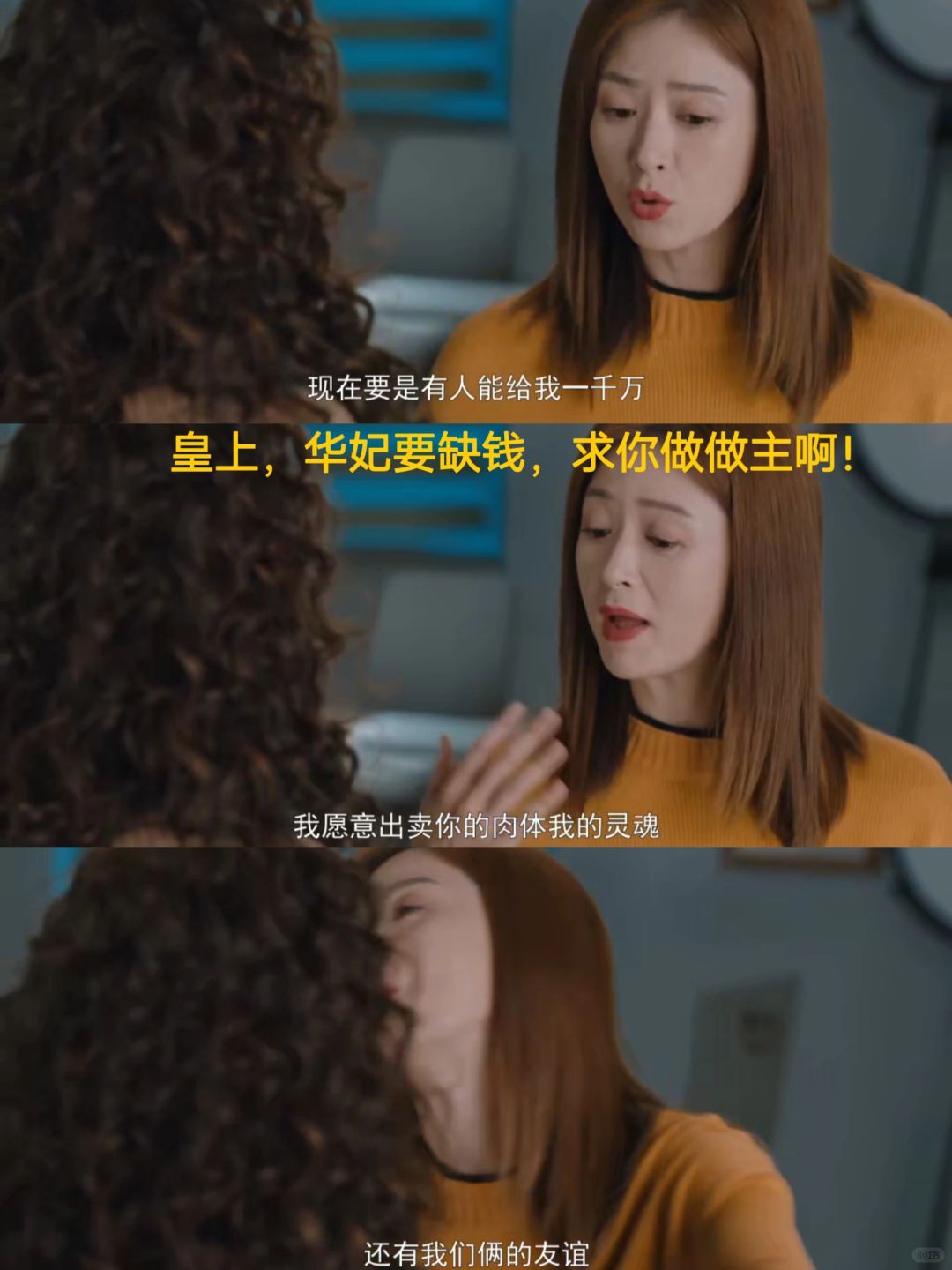 🍒剧情:哈哈哈,简直笑死了,何嘉如疯了!“给我一千万,我可以出卖自己的灵魂和闺蜜的肉体”!哈哈,牛逼,这是做梦都想着有钱啊!毕竟现在谁的梦想不是暴富发财,走上人生巅峰呢!何嘉如的反应真的不要太真实,跟闺蜜调侃,说要“卖”了自己,哈哈哈原谅我不厚道的笑了[偷笑R]!