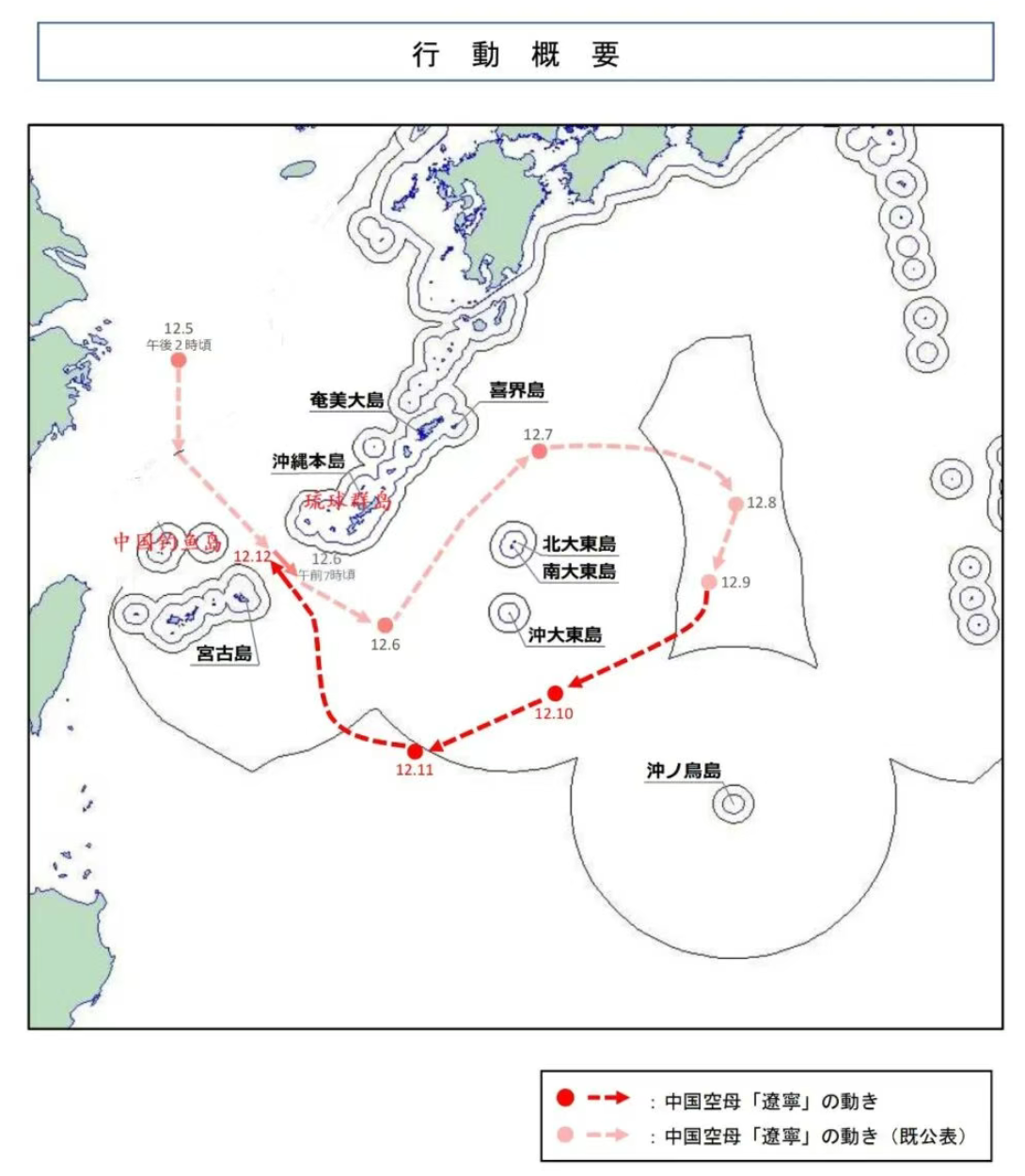 辽宁号航母编队,穿越宫古海峡进入西太平洋后,突然改变常规南下的航线,沿着冲绳(琉球)群岛东侧高速北上,在16小时内推进约600 公里。