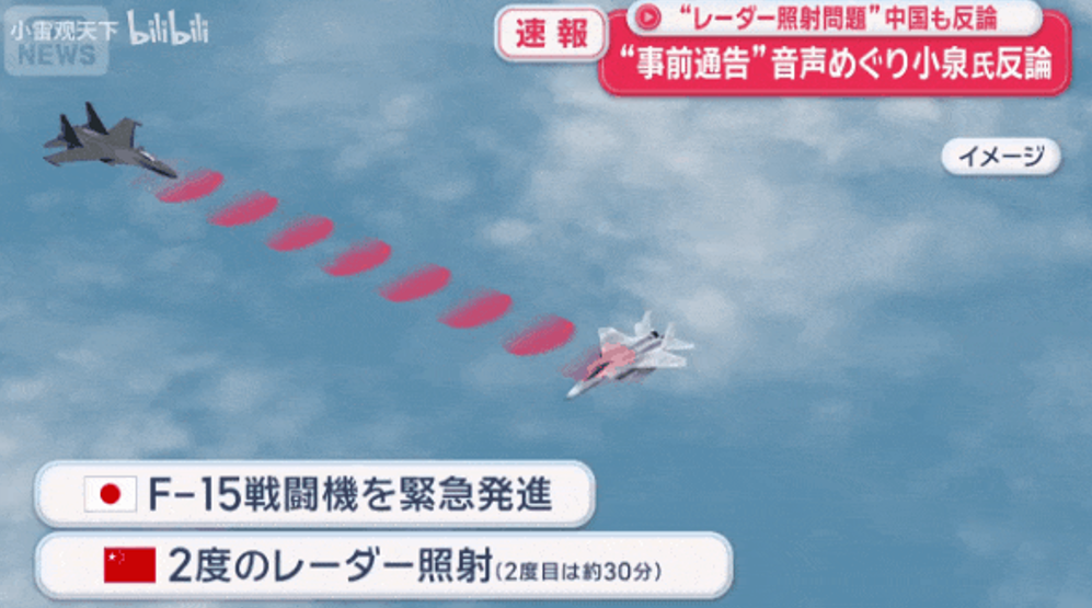 歼15战斗机起降作业过程中,凭借先进的机载有源相控阵雷达的优势,两次率先锁定了前来企图跟踪、监视和收集情报的日本航空自卫队的F-15J战斗机。