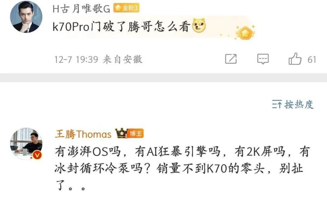 同样都是高管,同样都是子品牌,为啥别人的回应看起来就格局更大了,可能销量赶不上红米,但是人家是单独的,红米的销量为啥不和小米分开了,还冰封循环,还记得你们当时怎么吹的VC均热板吗?