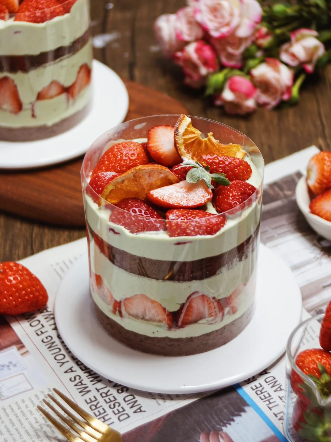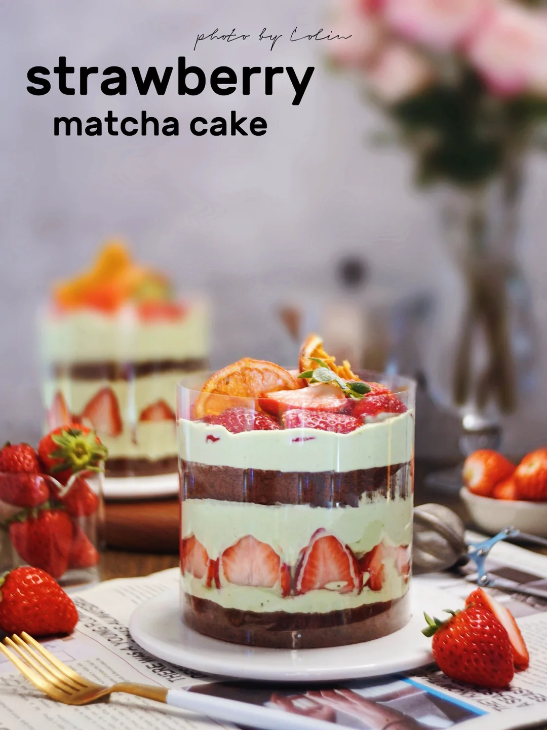 当草莓🍓恋上奶油,再用抹茶粉调味🍃一口就能吃出3种风味🍁