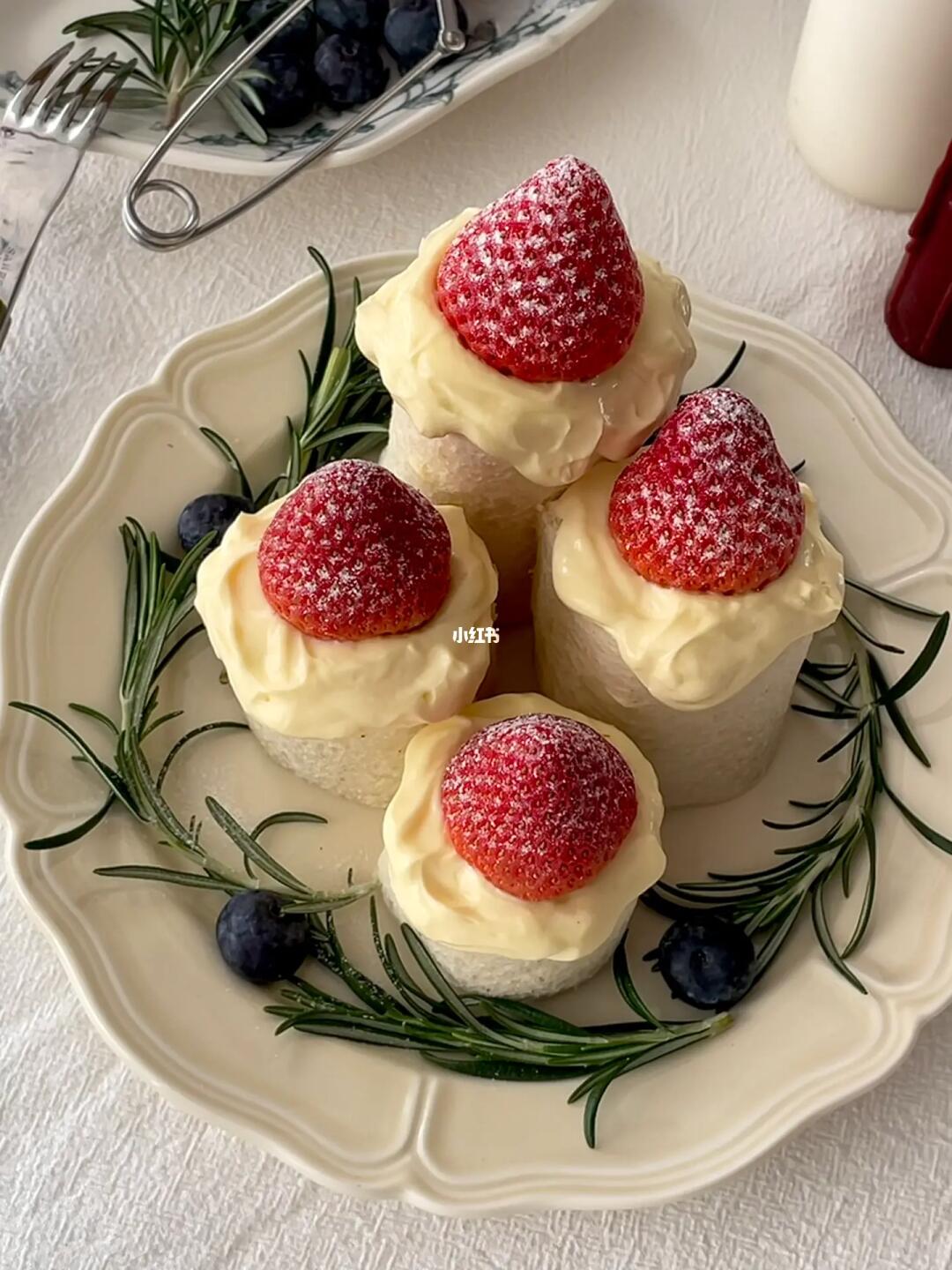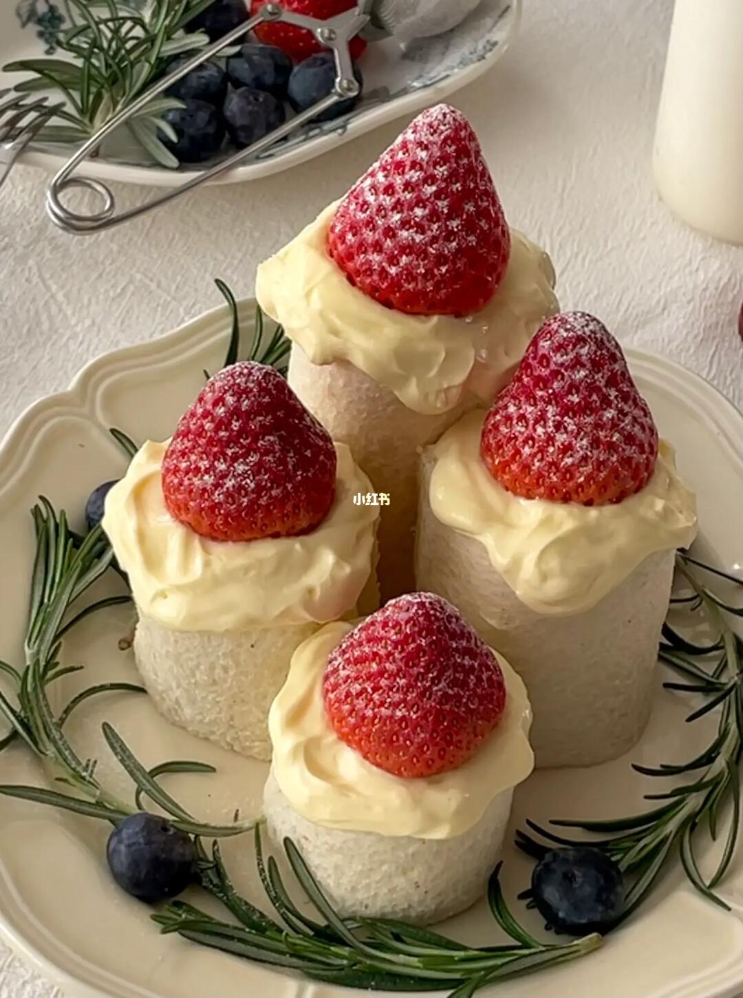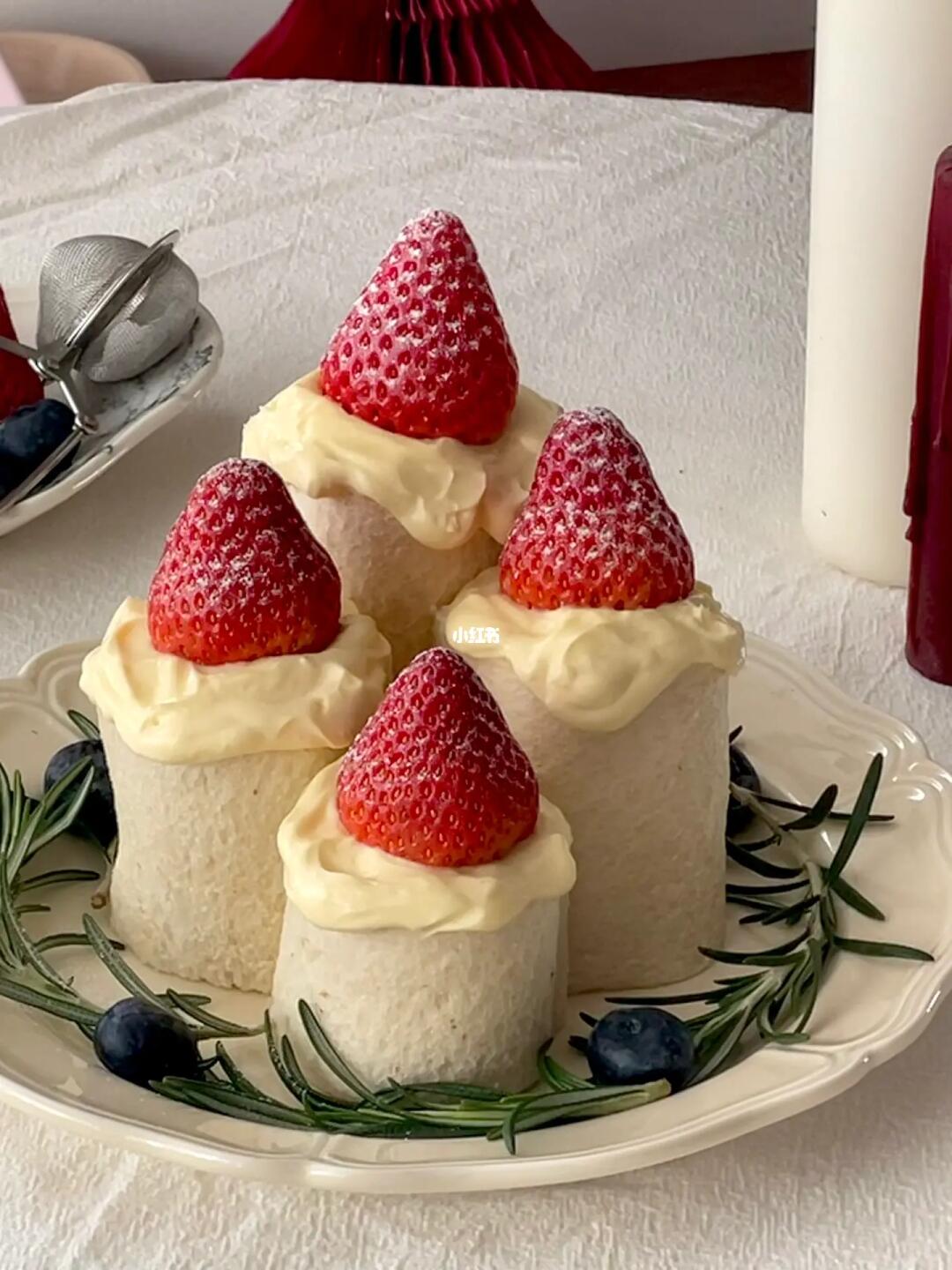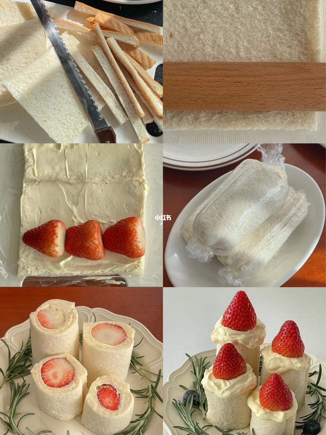 草莓和奶油夹在吐司里做成蜡烛🕯️的形状