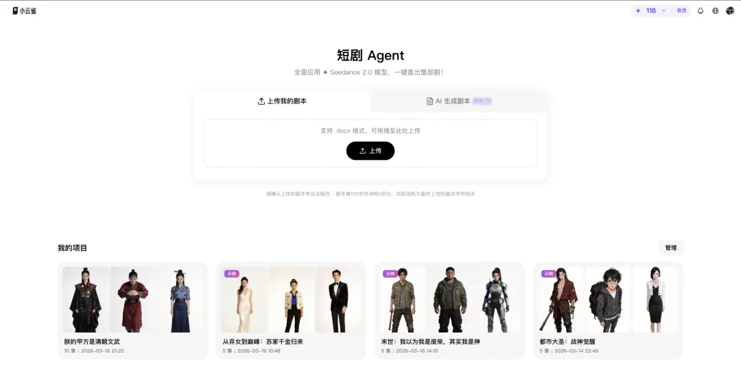 《万兽独尊》拥有庞大世界观和复杂角色成长线,涵盖废柴逆袭、仙界阴谋等元素,角色多达数十个。此前团队制作同类长篇短剧时,深受三大痛点困扰:人工拆解剧本慢、角色与场景建模耗时久、制作成本高且周期长,一部作品往往需要3到6个月才能完成。创翊文化一直在寻找能懂剧本、稳出片的全流程工具,而小云雀短剧Agent的出现恰逢其时。
