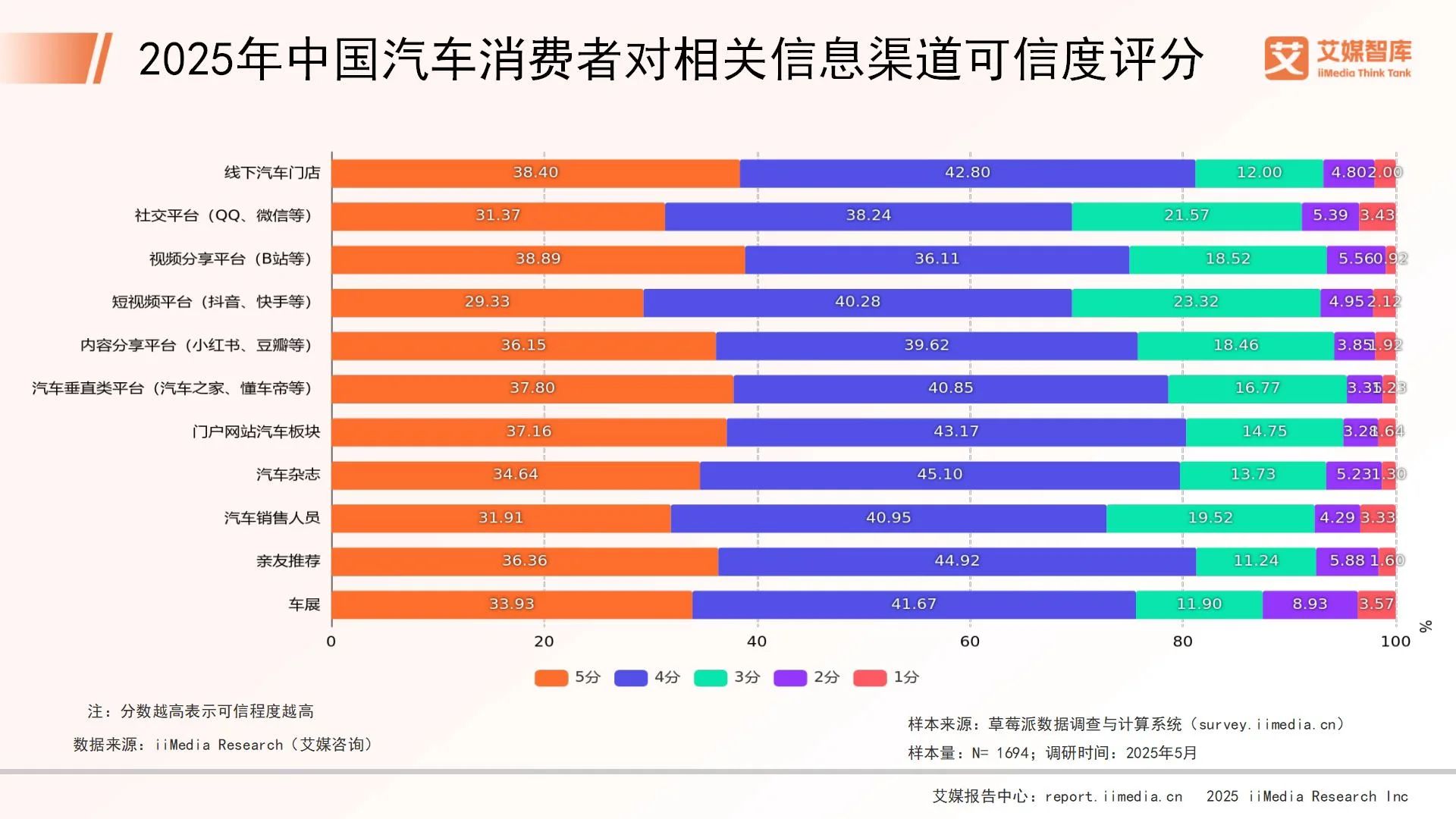 2025年中国汽车消费者对相关信息渠道可信度评分