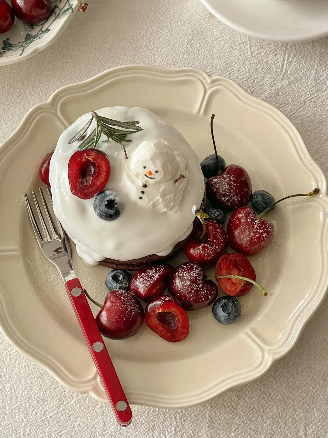 一口松饼一口车厘子 呜呜呜真的好幸福呀