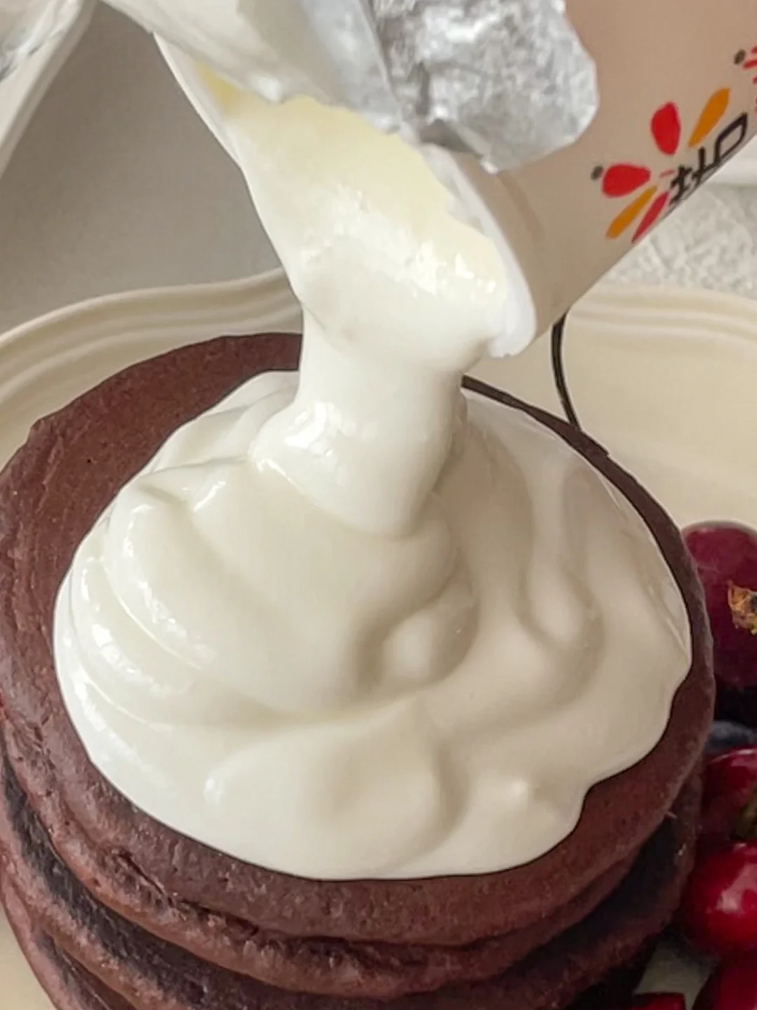 香甜松软的可可松饼淋上醇厚丝滑的酸奶浇头