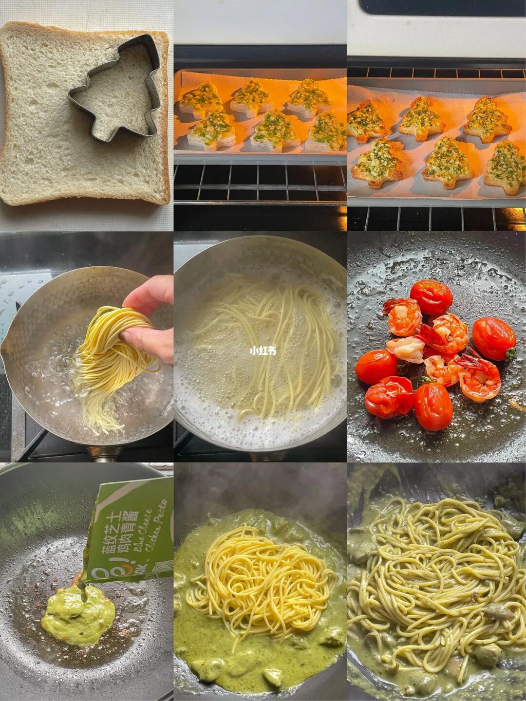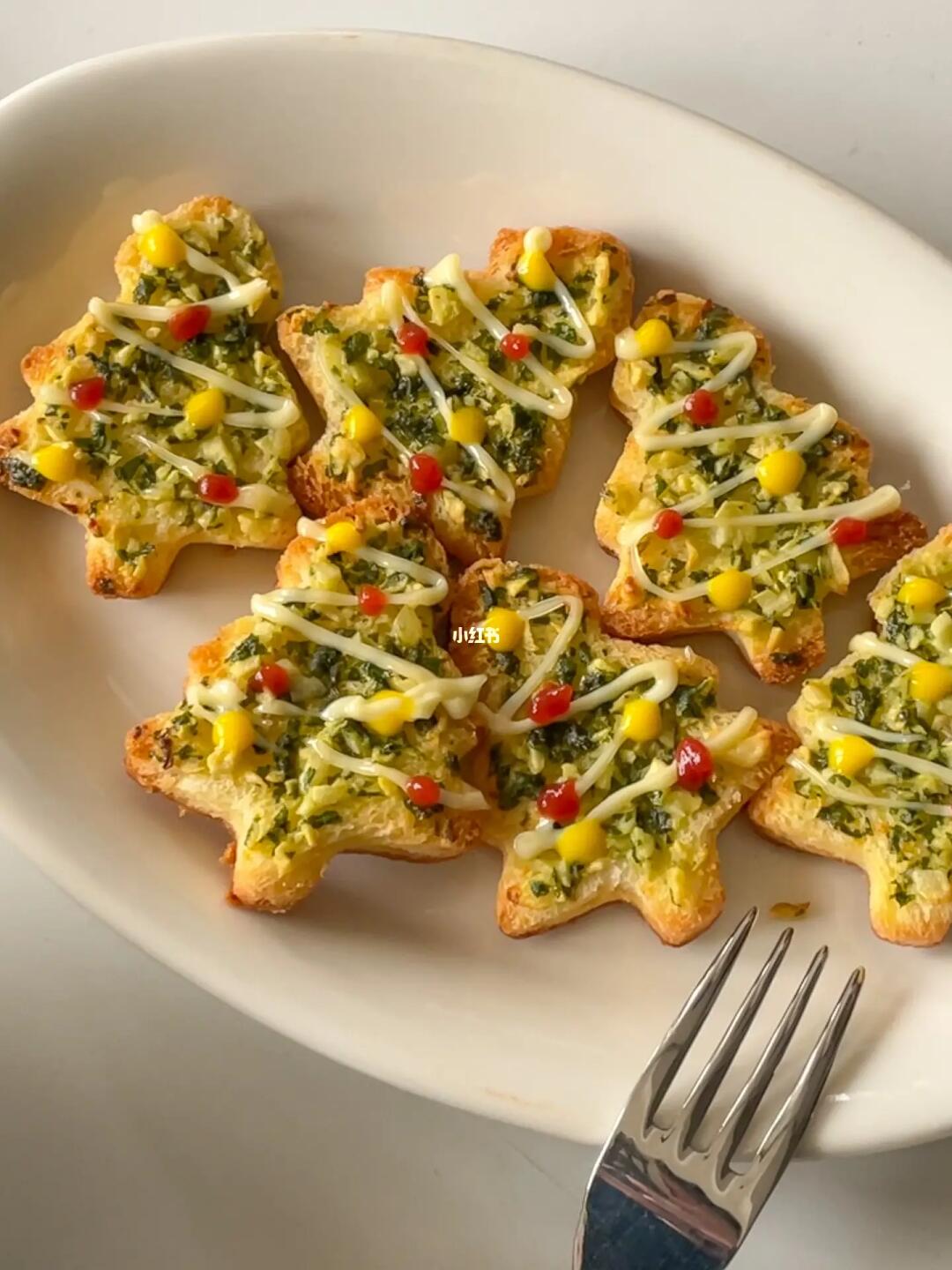材料:吐司、黄油、欧芹碎、蒜头、圣诞树模具