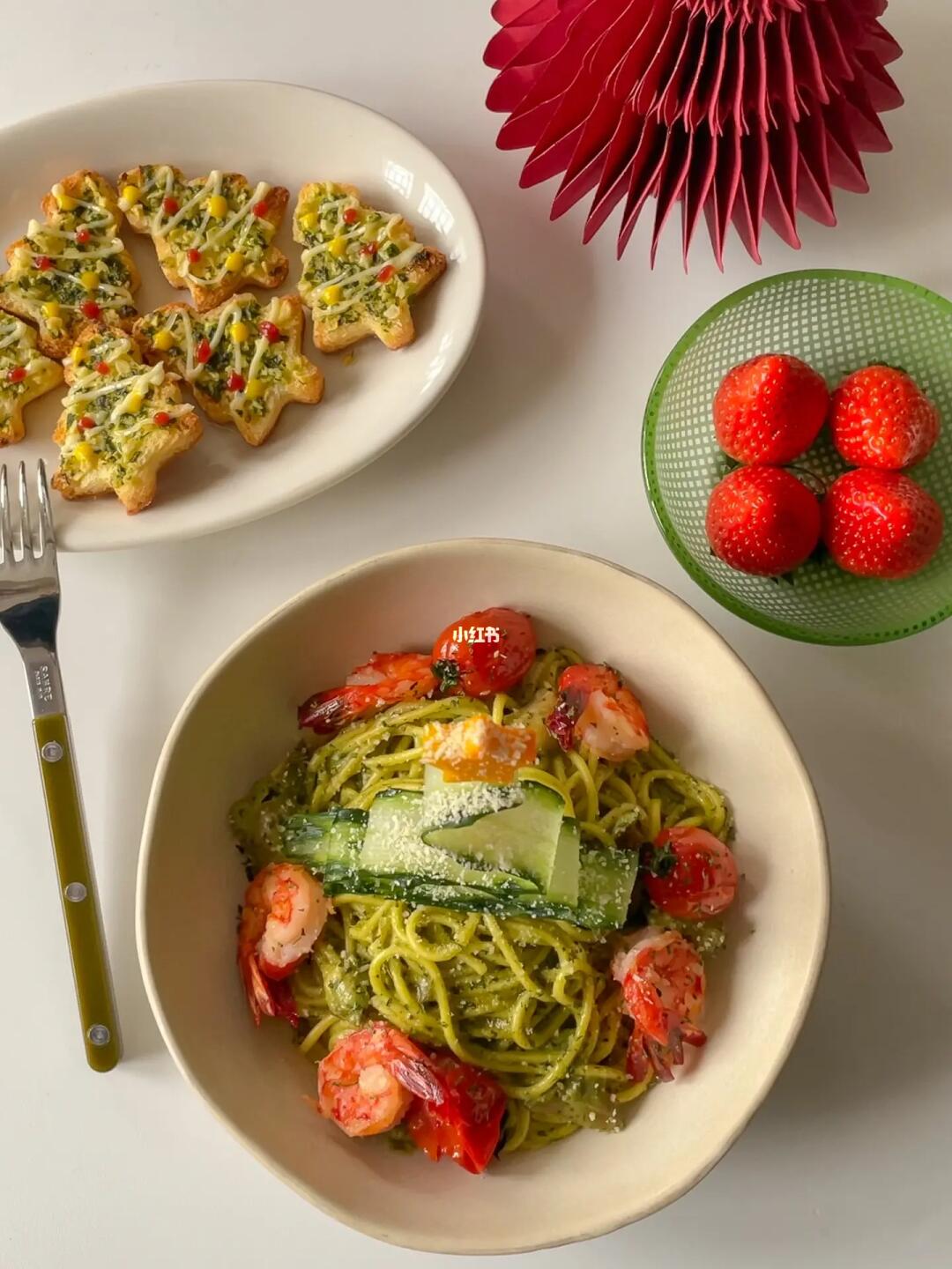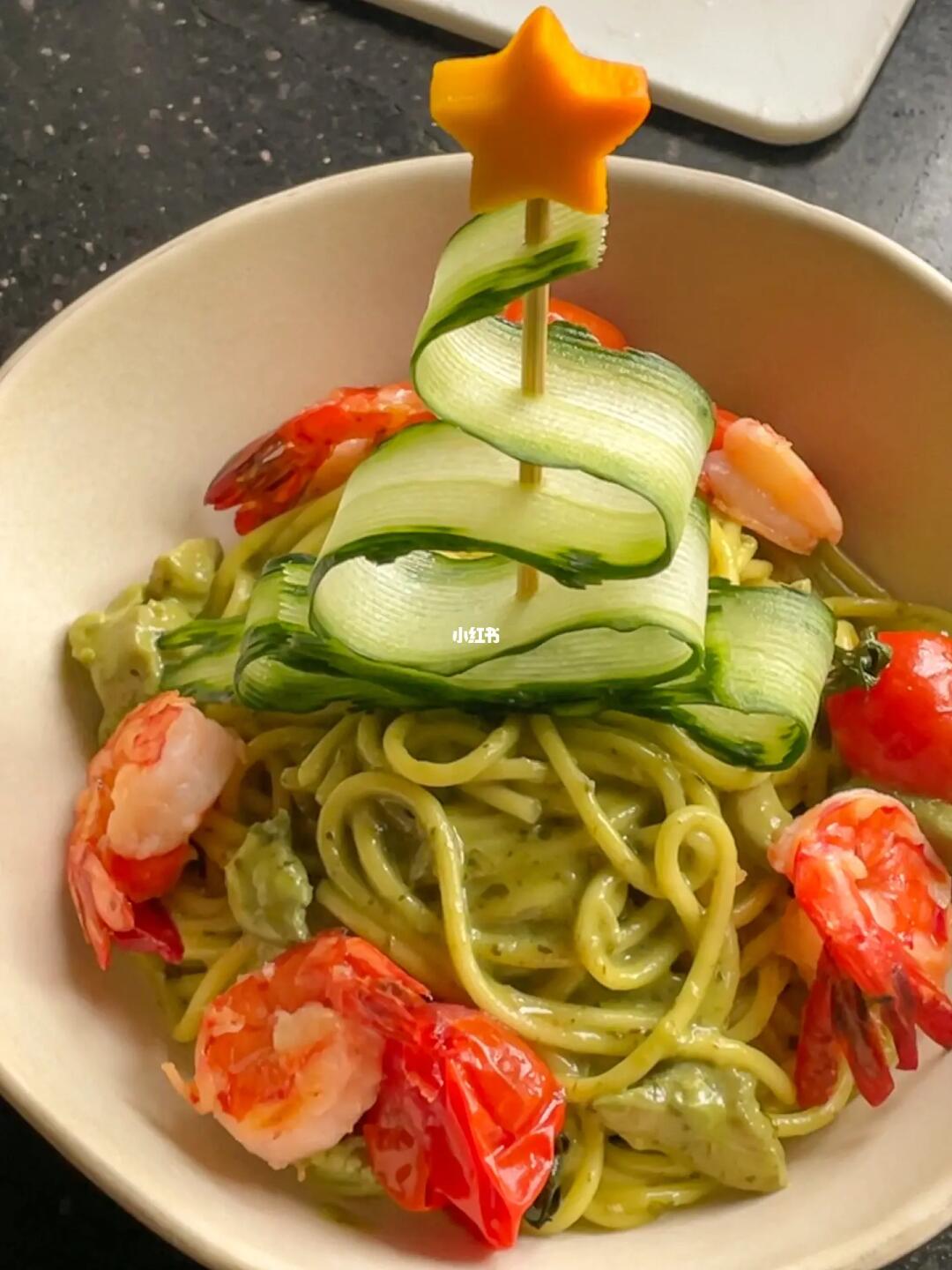 今天宅在家做了🎄圣诞树牛油果意面