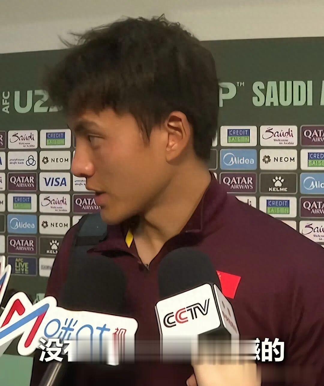 就是李昊在球场下来之后接受采访的画面!其实我觉得李昊已经把能扑的球都扑住了!两个折射,一个死角,一个点球,这些谁又能做到呢?
