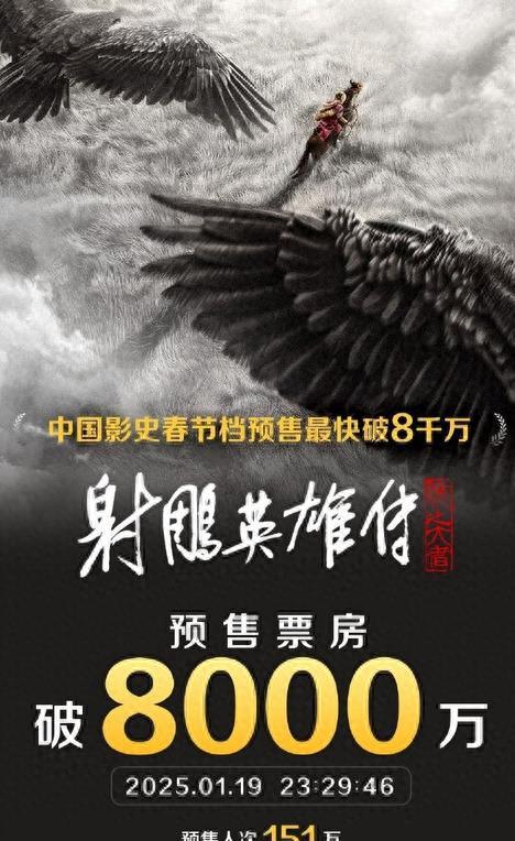 《射雕英雄传:侠之大者》无疑是近年来中国影坛的一颗耀眼明星,预售票房突破8000万,这一数字不仅让它成为中国影史国产片预售票房冠军,也在春节档的电影市场中占据了一个极为有利的位置。影片的成功不仅归功于其经典IP和高制作质量,还得益于主演肖战的强大市场号召力和导演团队的精心策划。那么,这部影片究竟有什么魔力,能在短时间内吸引如此大量的观众?让我们一起深入探讨。