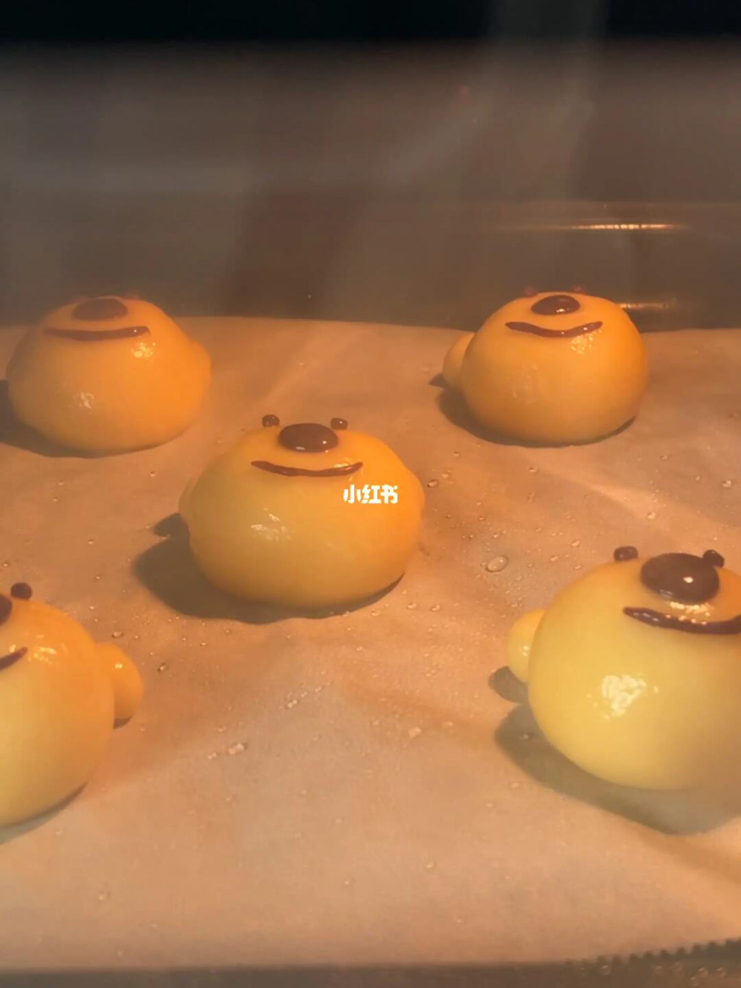 6️⃣将组合好的麻薯表面喷水,送入提前预热好的烤箱,中下层170度32分钟