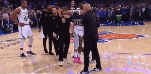 比赛最后38秒,当塔图姆以一记暴扣将比分追至113-121时,麦迪逊花园球馆突然陷入死寂。镜头特写捕捉到这位刚砍下42+8+4的超巨毫无征兆地跪倒在地,右手死死抓住右脚踝,汗水混合着泪水在聚光灯下折射出刺眼光芒。