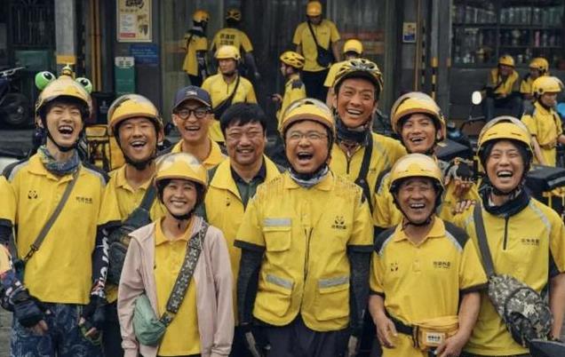 可问题是,这是一张海报,海报就是剧情的定格,剧情中的人物就是外卖员,谁规定了外卖员就永远不能开心大笑呢?