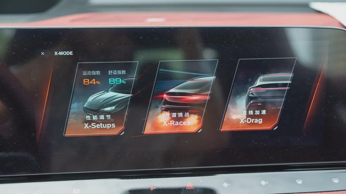 另外,在车辆性能化的设置上,MG7给到驾驶员足够大的调节空间,在按下方向盘上的X-MODE按钮之后可以对车辆多方面进行设置,在动力上有舒适、标准、运动可调节,电子差速锁有弱、中、强三挡可调,转向也有舒适、标准和运动三种选项,而电控悬架上有舒适、标准、运动、超级玩家四种调节选项,这些都可以自由组合,实现驾驶员想要的搭配效果。