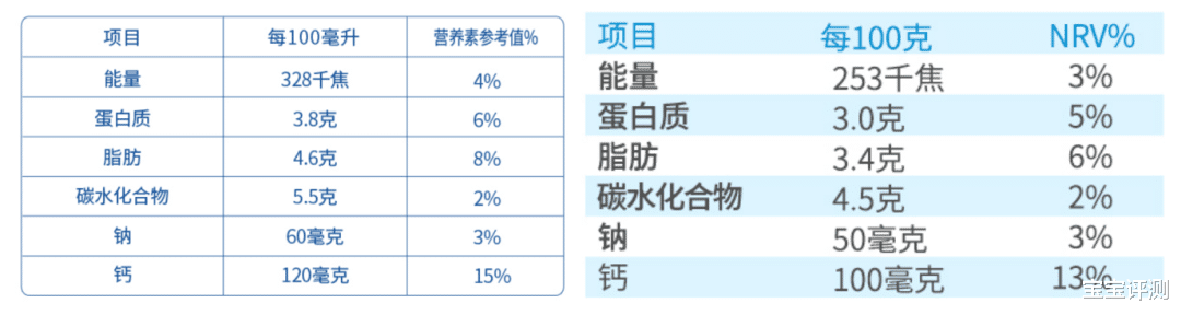 3、本期横评从营养成分表入手,具体对比的营养价值指标包括:钙、蛋白质、脂肪、碳水化合物。