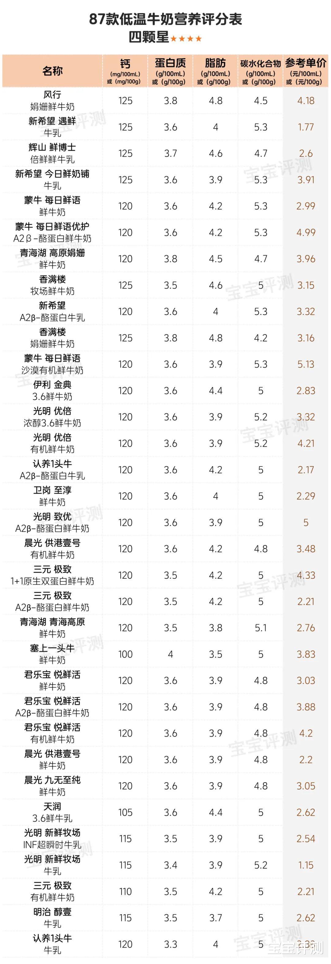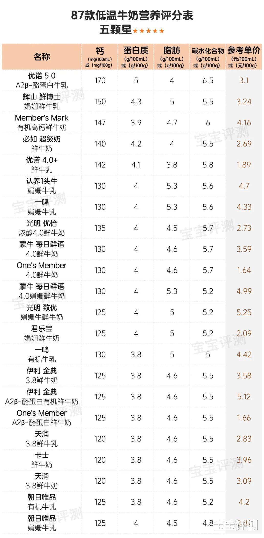钠、“A2β-酪蛋白”、“娟姗牛奶”不作为横评指标。(具体原因详见前面的文章)