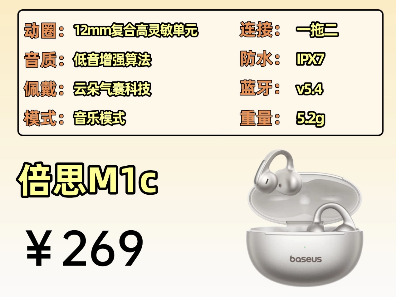 推荐理由: 这款耳夹式耳机的性价比特别高,在一百块左右的价位里,算是非常值得入手的一款。